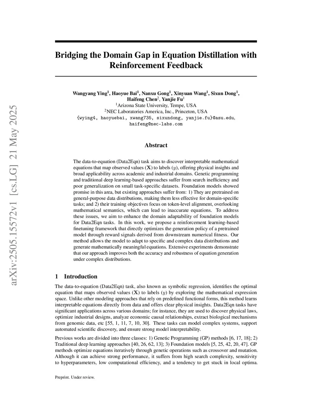 Bridging the Domain Gap in Equation Distillation with Reinforcement Feedback