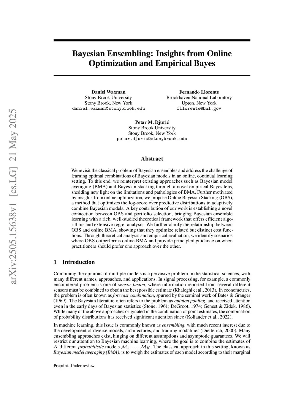 Bayesian Ensembling: Insights from Online Optimization and Empirical Bayes
