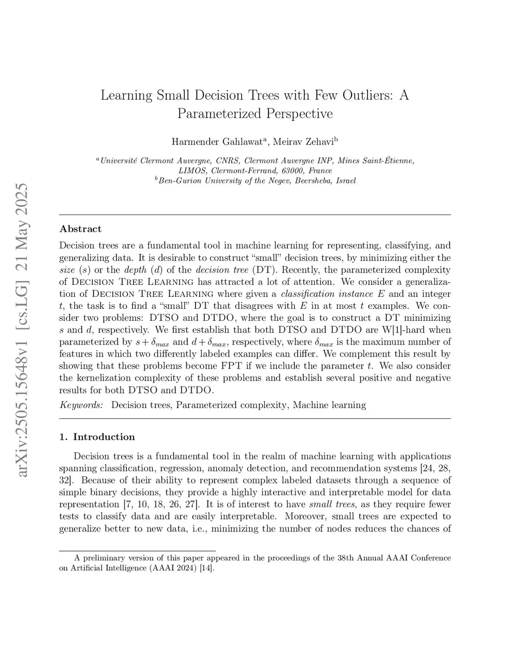 Learning Small Decision Trees with Few Outliers: A Parameterized Perspective