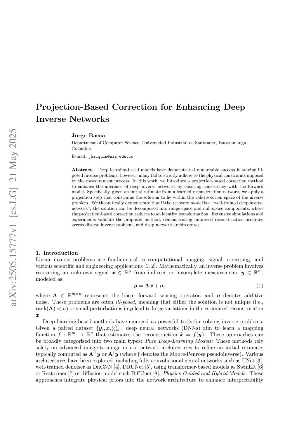 Projection-Based Correction for Enhancing Deep Inverse Networks