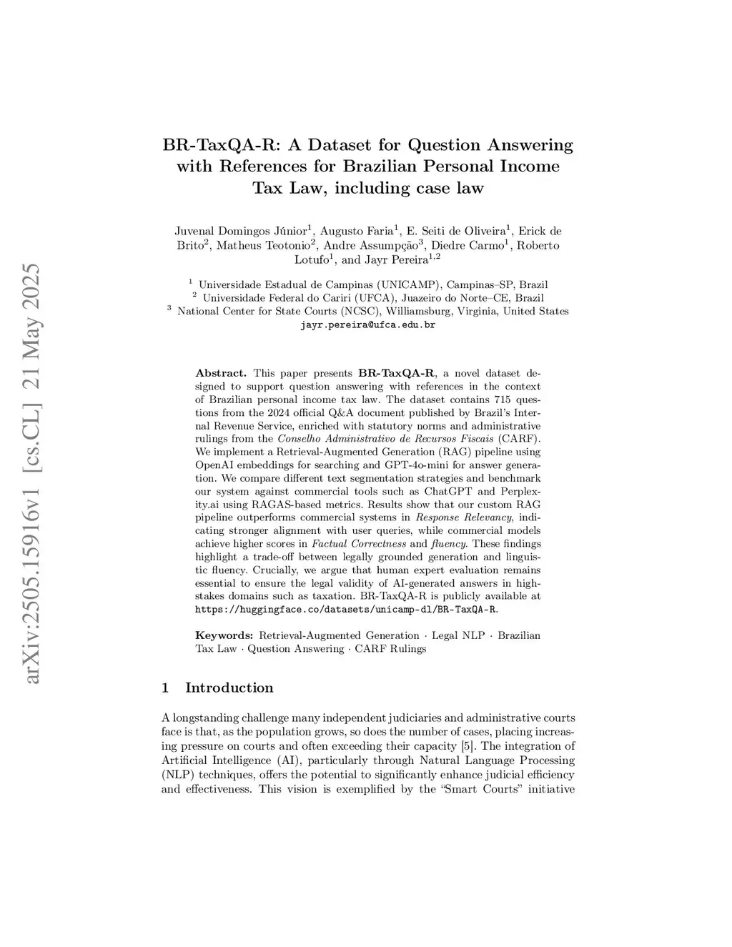This paper presents BR-TaxQA-R, a novel dataset designed to support question answering with references in the context of Brazilian personal income tax law. The dataset contains 715 questions from the 2024 official Q\&A document published by Brazil's Internal Revenue Service, enriched with statutory norms and administrative rulings from the Conselho Administrativo de Recursos Fiscais (CARF). We implement a Retrieval-Augmented Generation (RAG) pipeline using OpenAI embeddings for searching and GPT-4o-mini for answer generation. We compare different text segmentation strategies and benchmark our system against commercial tools such as ChatGPT andthis http URLusing RAGAS-based metrics. Results show that our custom RAG pipeline outperforms commercial systems in Response Relevancy, indicating stronger alignment with user queries, while commercial models achieve higher scores in Factual Correctness and fluency. These findings highlight a trade-off between legally grounded generation and linguistic fluency. Crucially, we argue that human expert evaluation remains essential to ensure the legal validity of AI-generated answers in high-stakes domains such as taxation. BR-TaxQA-R is publicly available atthis https URL.