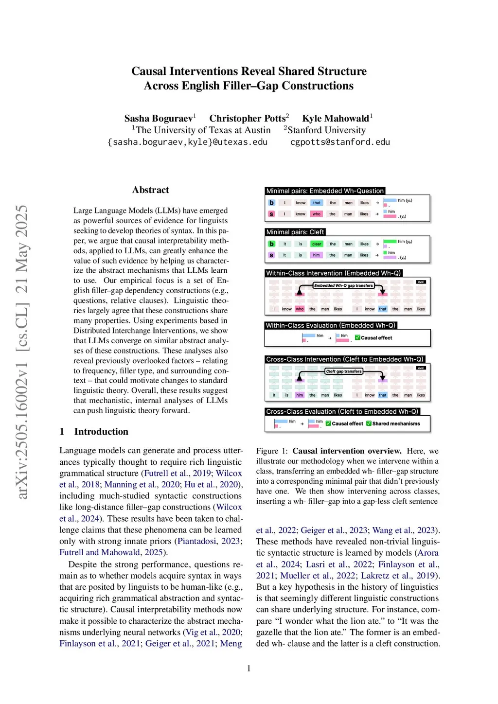 Large Language Models (LLMs) have emerged as powerful sources of evidence for linguists seeking to develop theories of syntax. In this paper, we argue that causal interpretability methods, applied to LLMs, can greatly enhance the value of such evidence by helping us characterize the abstract mechanisms that LLMs learn to use. Our empirical focus is a set of English filler-gap dependency constructions (e.g., questions, relative clauses). Linguistic theories largely agree that these constructions share many properties. Using experiments based in Distributed Interchange Interventions, we show that LLMs converge on similar abstract analyses of these constructions. These analyses also reveal previously overlooked factors -- relating to frequency, filler type, and surrounding context -- that could motivate changes to standard linguistic theory. Overall, these results suggest that mechanistic, internal analyses of LLMs can push linguistic theory forward.