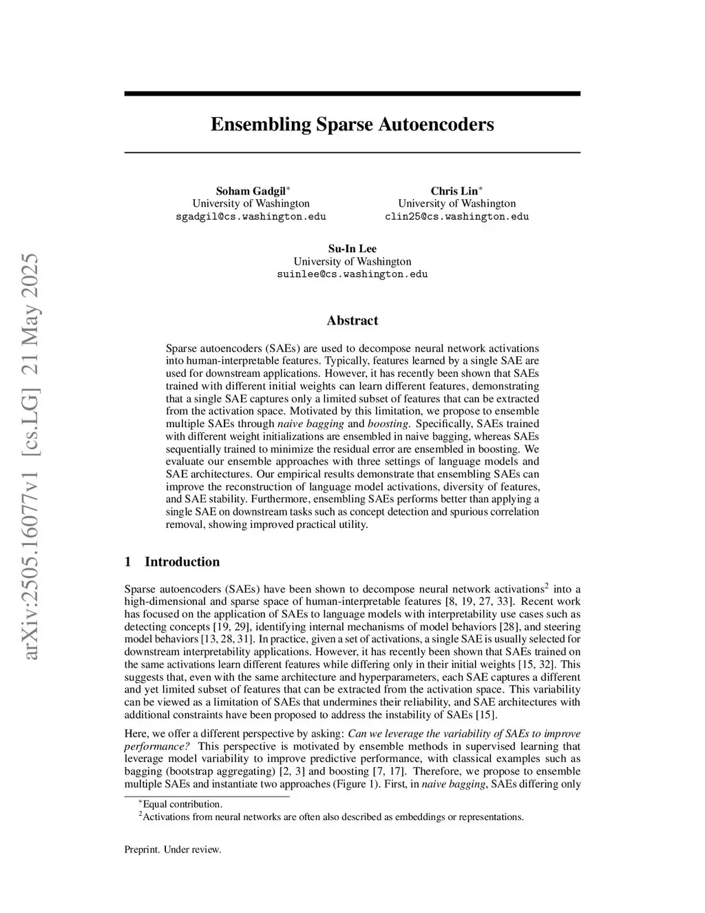 Sparse autoencoders (SAEs) are used to decompose neural network activations into human-interpretable features. Typically, features learned by a single SAE are used for downstream applications. However, it has recently been shown that SAEs trained with different initial weights can learn different features, demonstrating that a single SAE captures only a limited subset of features that can be extracted from the activation space. Motivated by this limitation, we propose to ensemble multiple SAEs through naive bagging and boosting. Specifically, SAEs trained with different weight initializations are ensembled in naive bagging, whereas SAEs sequentially trained to minimize the residual error are ensembled in boosting. We evaluate our ensemble approaches with three settings of language models and SAE architectures. Our empirical results demonstrate that ensembling SAEs can improve the reconstruction of language model activations, diversity of features, and SAE stability. Furthermore, ensembling SAEs performs better than applying a single SAE on downstream tasks such as concept detection and spurious correlation removal, showing improved practical utility.