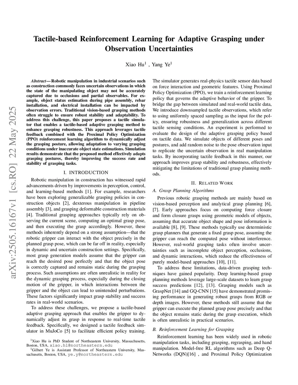 Tactile-based Reinforcement Learning for Adaptive Grasping under Observation Uncertainties