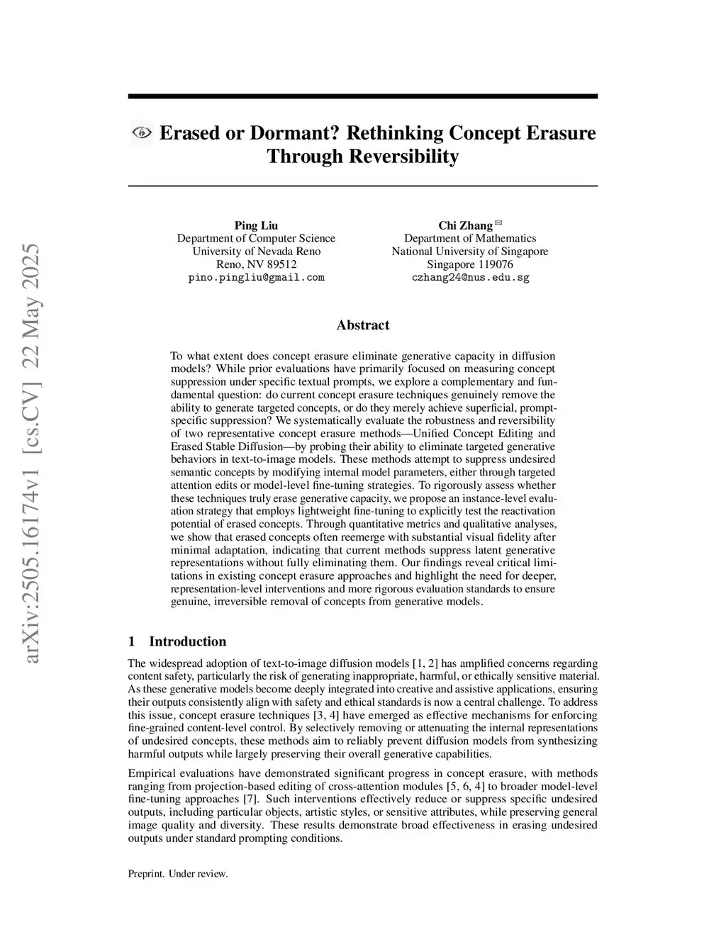 To what extent does concept erasure eliminate generative capacity in diffusion models? While prior evaluations have primarily focused on measuring concept suppression under specific textual prompts, we explore a complementary and fundamental question: do current concept erasure techniques genuinely remove the ability to generate targeted concepts, or do they merely achieve superficial, prompt-specific suppression? We systematically evaluate the robustness and reversibility of two representative concept erasure methods, Unified Concept Editing and Erased Stable Diffusion, by probing their ability to eliminate targeted generative behaviors in text-to-image models. These methods attempt to suppress undesired semantic concepts by modifying internal model parameters, either through targeted attention edits or model-level fine-tuning strategies. To rigorously assess whether these techniques truly erase generative capacity, we propose an instance-level evaluation strategy that employs lightweight fine-tuning to explicitly test the reactivation potential of erased concepts. Through quantitative metrics and qualitative analyses, we show that erased concepts often reemerge with substantial visual fidelity after minimal adaptation, indicating that current methods suppress latent generative representations without fully eliminating them. Our findings reveal critical limitations in existing concept erasure approaches and highlight the need for deeper, representation-level interventions and more rigorous evaluation standards to ensure genuine, irreversible removal of concepts from generative models.