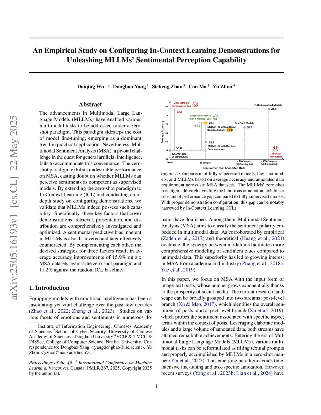 The advancements in Multimodal Large Language Models (MLLMs) have enabled various multimodal tasks to be addressed under a zero-shot paradigm. This paradigm sidesteps the cost of model fine-tuning, emerging as a dominant trend in practical application. Nevertheless, Multimodal Sentiment Analysis (MSA), a pivotal challenge in the quest for general artificial intelligence, fails to accommodate this convenience. The zero-shot paradigm exhibits undesirable performance on MSA, casting doubt on whether MLLMs can perceive sentiments as competent as supervised models. By extending the zero-shot paradigm to In-Context Learning (ICL) and conducting an in-depth study on configuring demonstrations, we validate that MLLMs indeed possess such capability. Specifically, three key factors that cover demonstrations' retrieval, presentation, and distribution are comprehensively investigated and optimized. A sentimental predictive bias inherent in MLLMs is also discovered and later effectively counteracted. By complementing each other, the devised strategies for three factors result in average accuracy improvements of 15.9% on six MSA datasets against the zero-shot paradigm and 11.2% against the random ICL baseline.