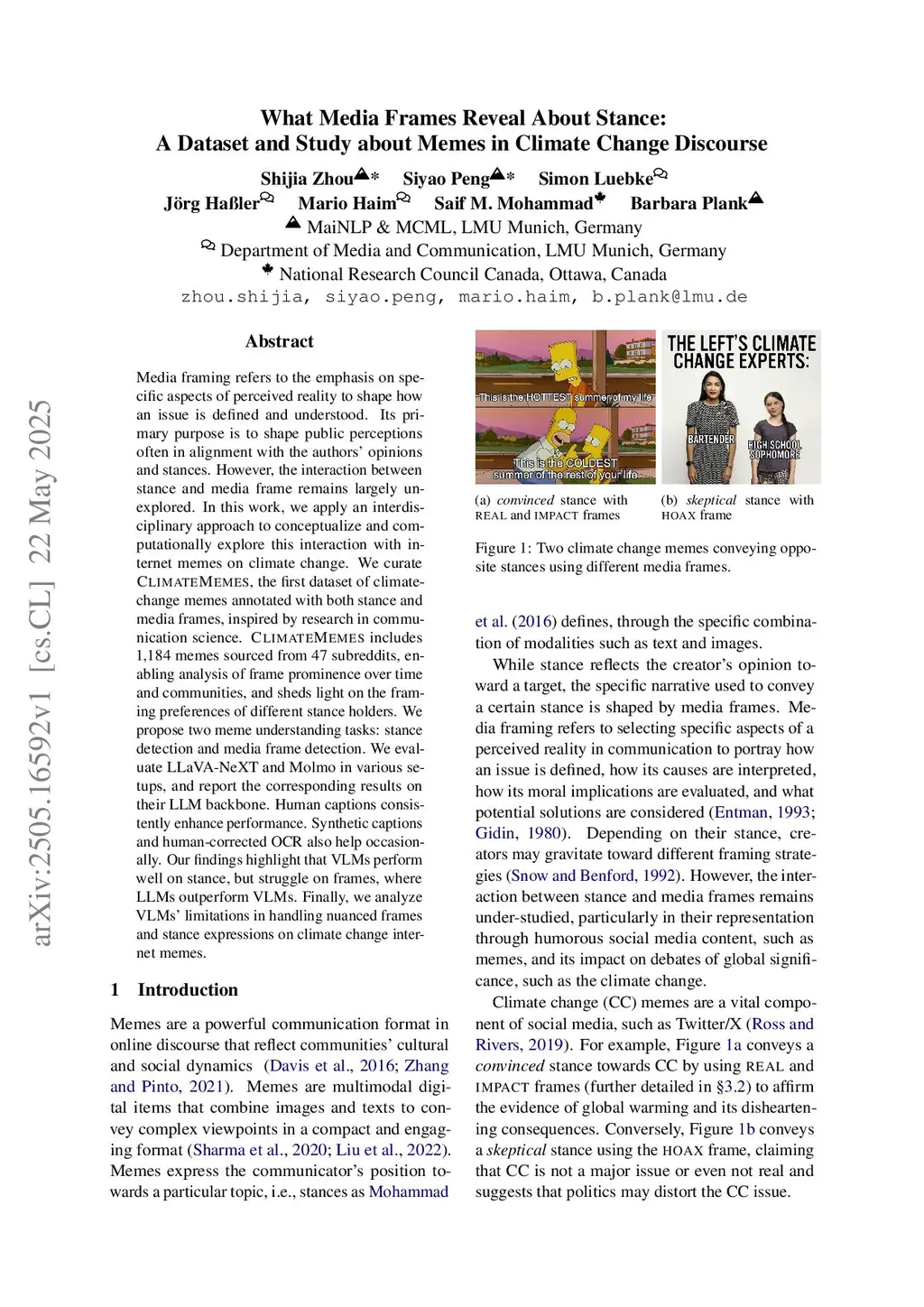 What Media Frames Reveal About Stance: A Dataset and Study about Memes in Climate Change Discourse