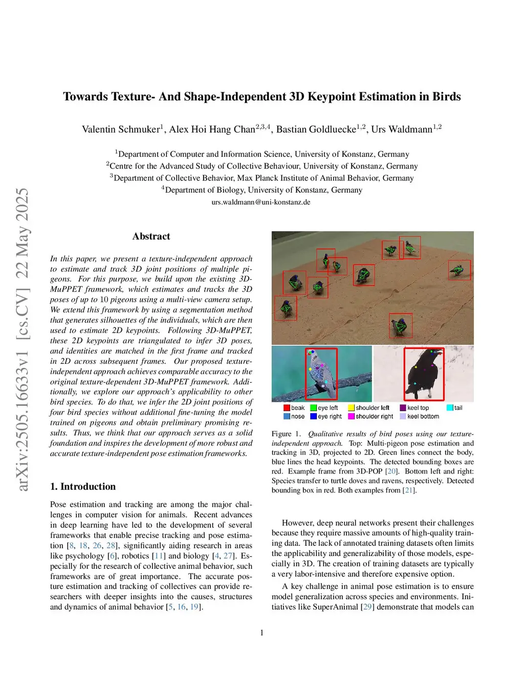 Towards Texture- And Shape-Independent 3D Keypoint Estimation in Birds
