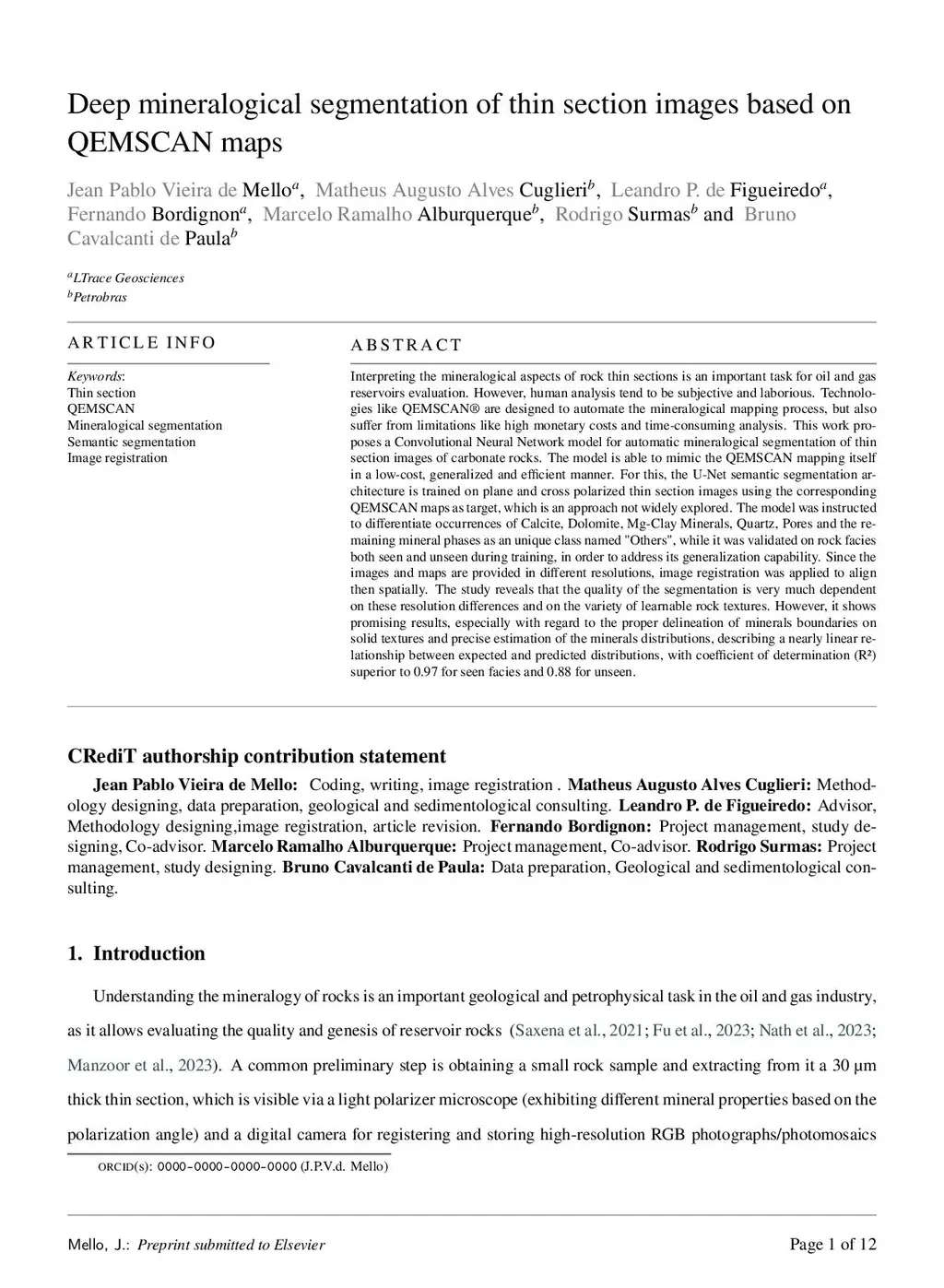 Deep mineralogical segmentation of thin section images based on QEMSCAN maps