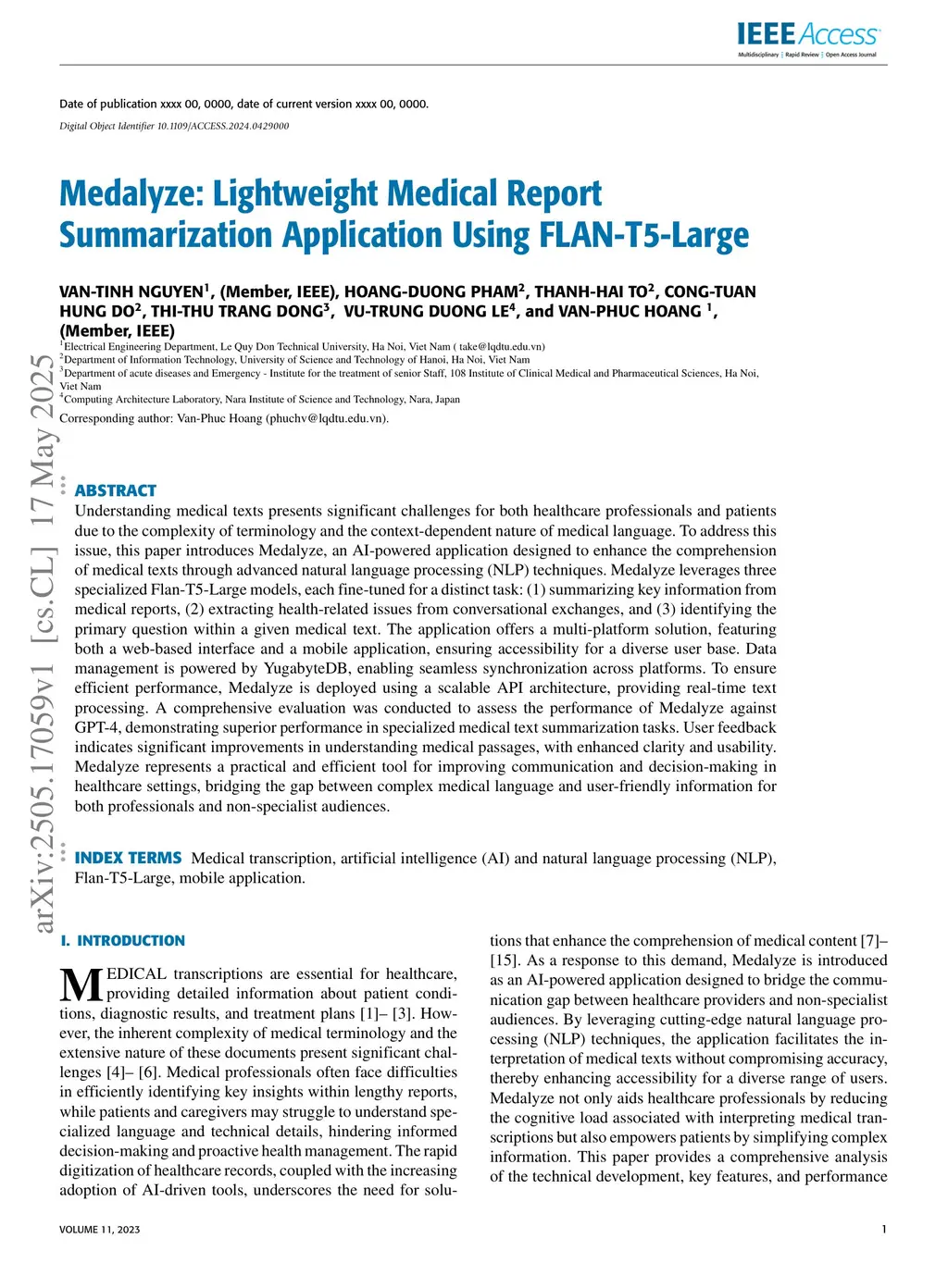Understanding medical texts presents significant challenges due to complex terminology and context-specific language. This paper introduces Medalyze, an AI-powered application designed to enhance the comprehension of medical texts using three specialized FLAN-T5-Large models. These models are fine-tuned for (1) summarizing medical reports, (2) extracting health issues from patient-doctor conversations, and (3) identifying the key question in a passage. Medalyze is deployed across a web and mobile platform with real-time inference, leveraging scalable API and YugabyteDB. Experimental evaluations demonstrate the system's superior summarization performance over GPT-4 in domain-specific tasks, based on metrics like BLEU, ROUGE-L, BERTScore, and SpaCy Similarity. Medalyze provides a practical, privacy-preserving, and lightweight solution for improving information accessibility in healthcare.