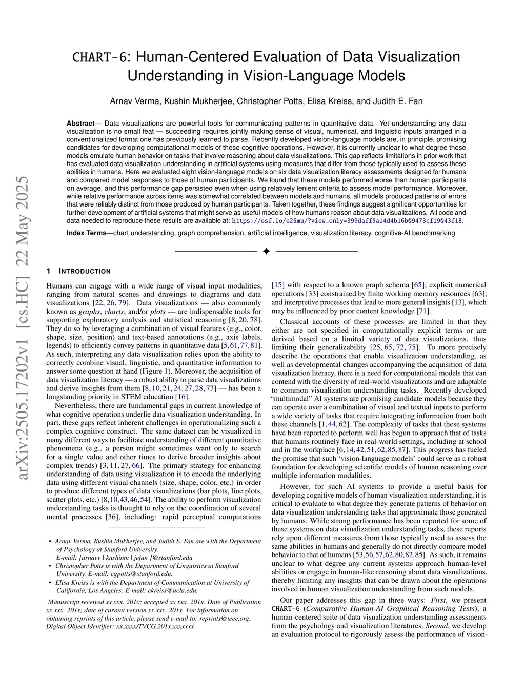 CHART-6: Human-Centered Evaluation of Data Visualization Understanding in Vision-Language Models