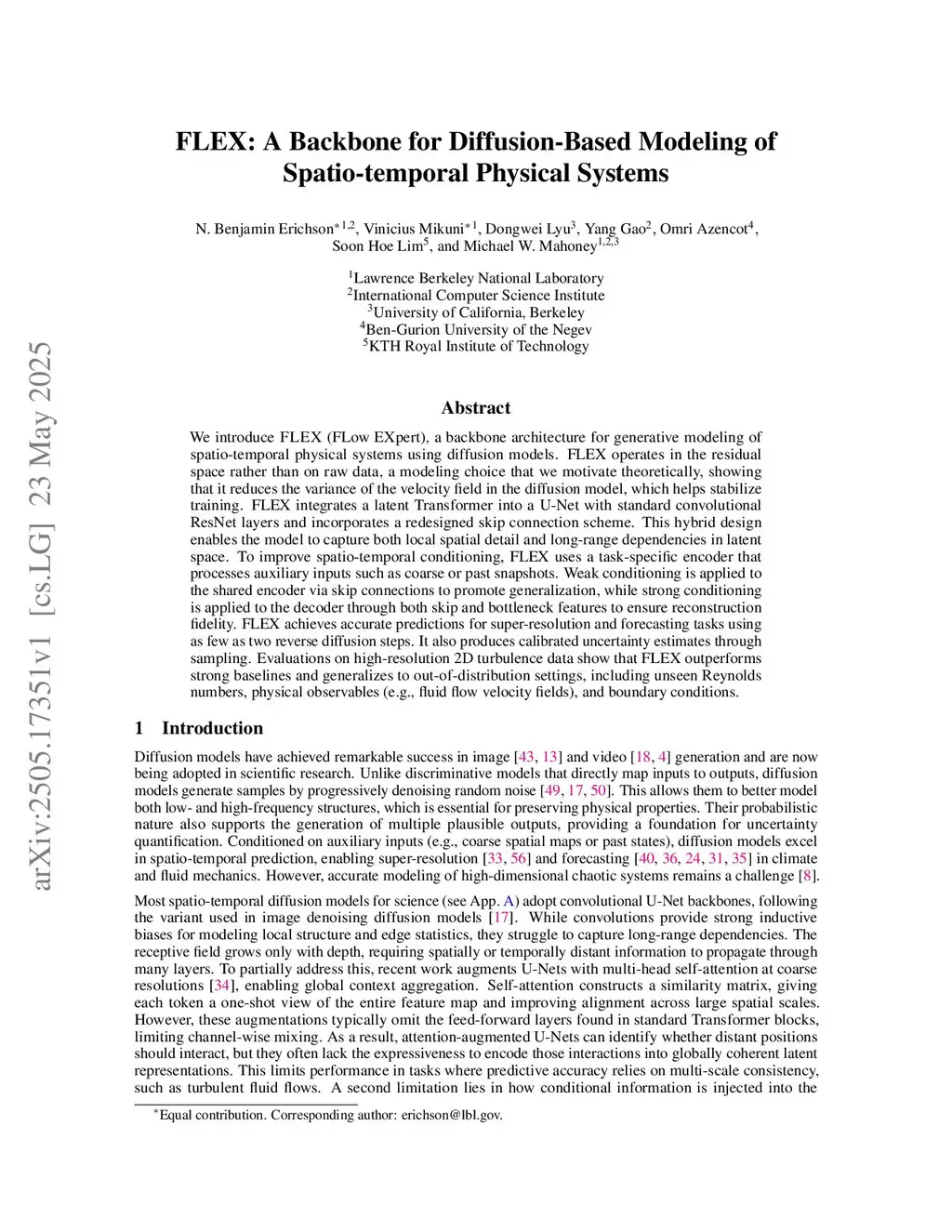 FLEX: A Backbone for Diffusion-Based Modeling of Spatio-temporal Physical Systems