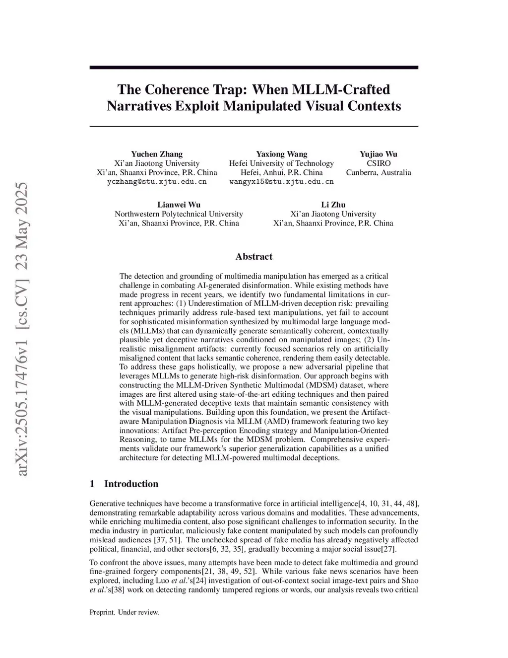 The detection and grounding of multimedia manipulation has emerged as a critical challenge in combating AI-generated disinformation. While existing methods have made progress in recent years, we identify two fundamental limitations in current approaches: (1) Underestimation of MLLM-driven deception risk: prevailing techniques primarily address rule-based text manipulations, yet fail to account for sophisticated misinformation synthesized by multimodal large language models (MLLMs) that can dynamically generate semantically coherent, contextually plausible yet deceptive narratives conditioned on manipulated images; (2) Unrealistic misalignment artifacts: currently focused scenarios rely on artificially misaligned content that lacks semantic coherence, rendering them easily detectable. To address these gaps holistically, we propose a new adversarial pipeline that leverages MLLMs to generate high-risk disinformation. Our approach begins with constructing the MLLM-Driven Synthetic Multimodal (MDSM) dataset, where images are first altered using state-of-the-art editing techniques and then paired with MLLM-generated deceptive texts that maintain semantic consistency with the visual manipulations. Building upon this foundation, we present the Artifact-aware Manipulation Diagnosis via MLLM (AMD) framework featuring two key innovations: Artifact Pre-perception Encoding strategy and Manipulation-Oriented Reasoning, to tame MLLMs for the MDSM problem. Comprehensive experiments validate our framework's superior generalization capabilities as a unified architecture for detecting MLLM-powered multimodal deceptions. In cross-domain testing on the MDSM dataset, AMD achieves the best average performance, with 88.18 ACC, 60.25 mAP, and 61.02 mIoU scores.