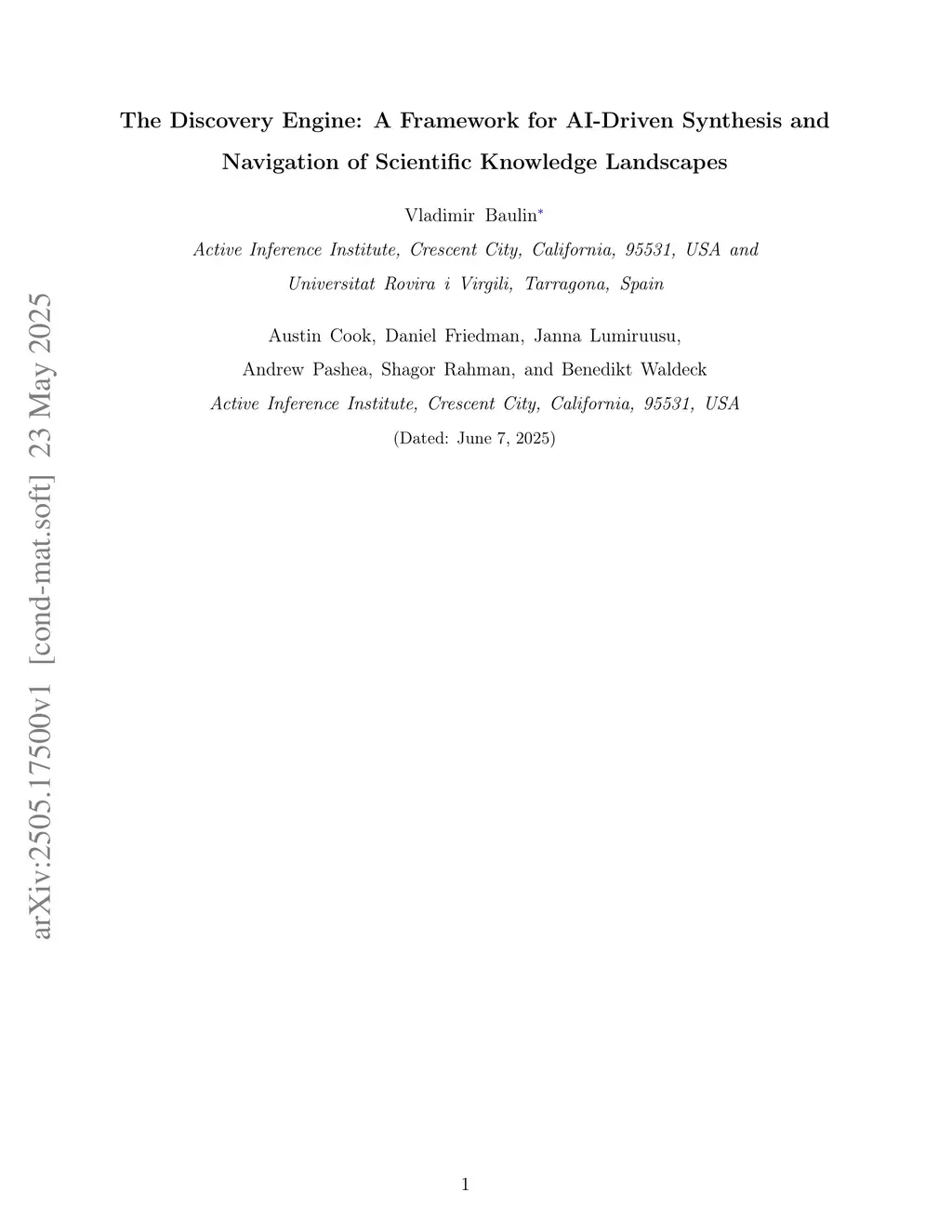 The Discovery Engine: A Framework for AI-Driven Synthesis and Navigation of Scientific Knowledge Landscapes