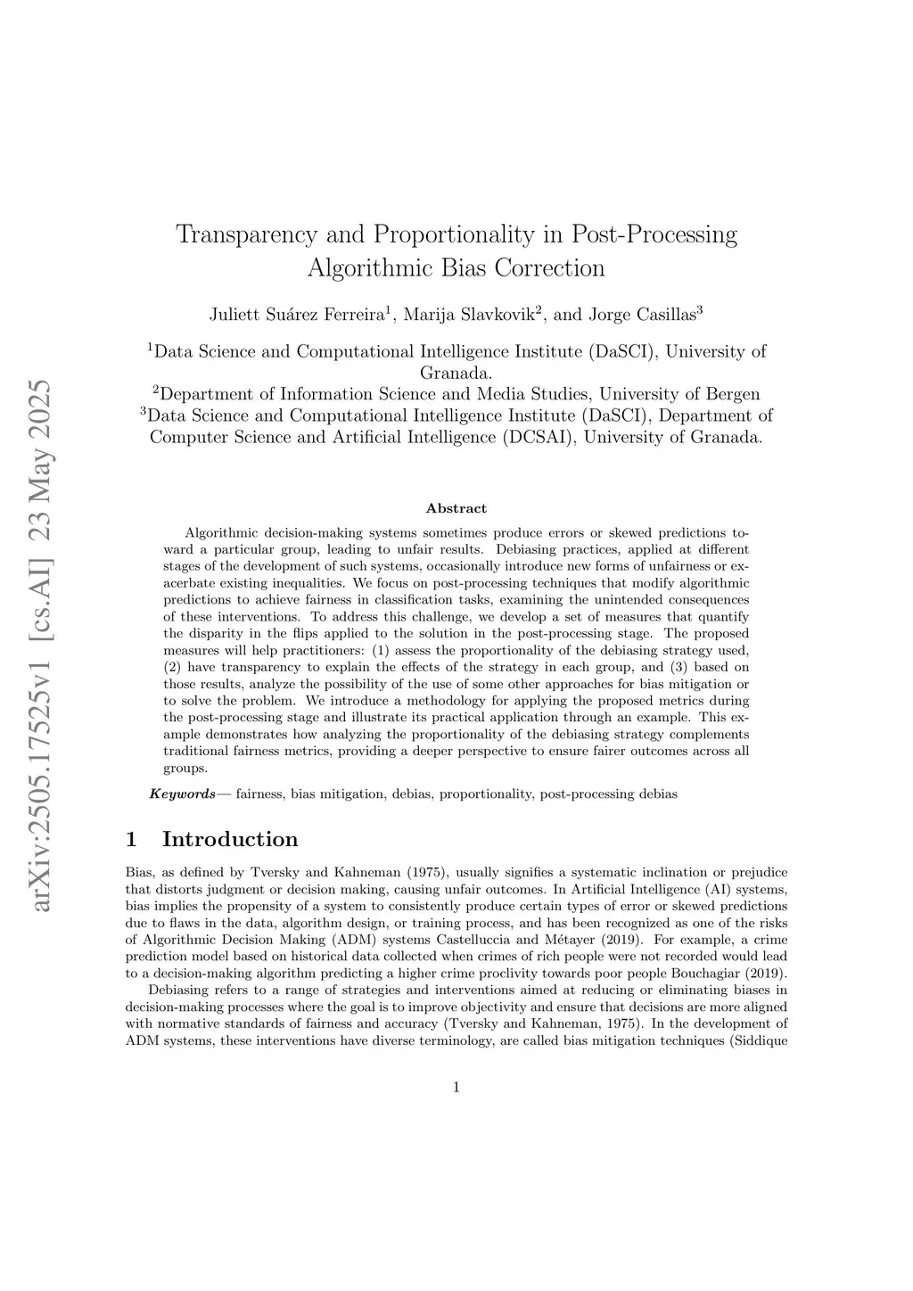 Transparency and Proportionality in Post-Processing Algorithmic Bias Correction