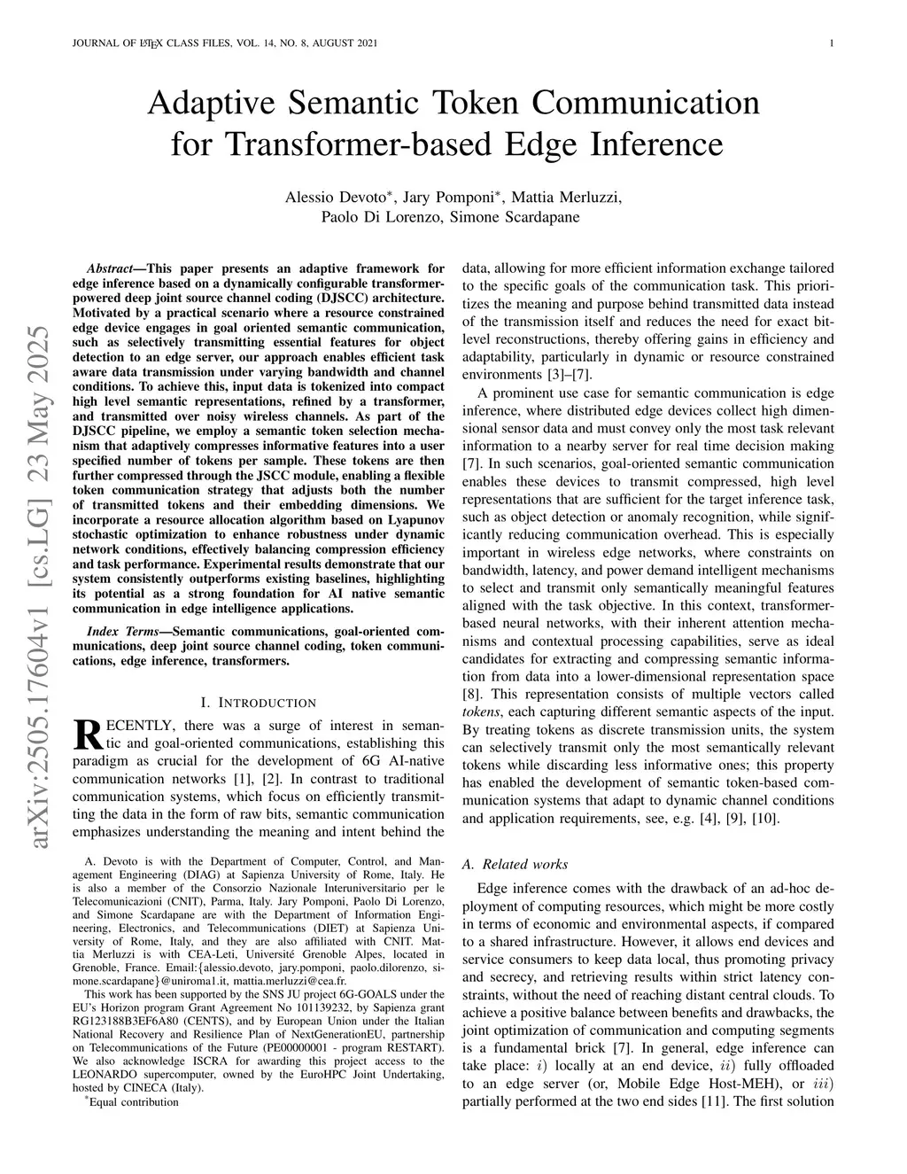 This paper presents an adaptive framework for edge inference based on a dynamically configurable transformer-powered deep joint source channel coding (DJSCC) architecture. Motivated by a practical scenario where a resource constrained edge device engages in goal oriented semantic communication, such as selectively transmitting essential features for object detection to an edge server, our approach enables efficient task aware data transmission under varying bandwidth and channel conditions. To achieve this, input data is tokenized into compact high level semantic representations, refined by a transformer, and transmitted over noisy wireless channels. As part of the DJSCC pipeline, we employ a semantic token selection mechanism that adaptively compresses informative features into a user specified number of tokens per sample. These tokens are then further compressed through the JSCC module, enabling a flexible token communication strategy that adjusts both the number of transmitted tokens and their embedding dimensions. We incorporate a resource allocation algorithm based on Lyapunov stochastic optimization to enhance robustness under dynamic network conditions, effectively balancing compression efficiency and task performance. Experimental results demonstrate that our system consistently outperforms existing baselines, highlighting its potential as a strong foundation for AI native semantic communication in edge intelligence applications.