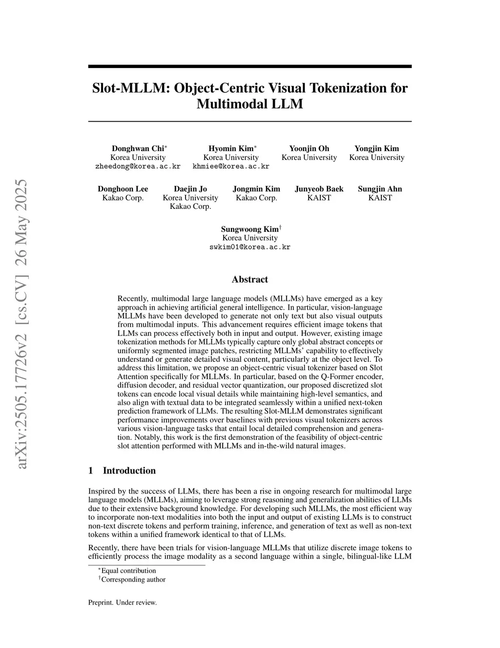 Slot-MLLM: Object-Centric Visual Tokenization for Multimodal LLM