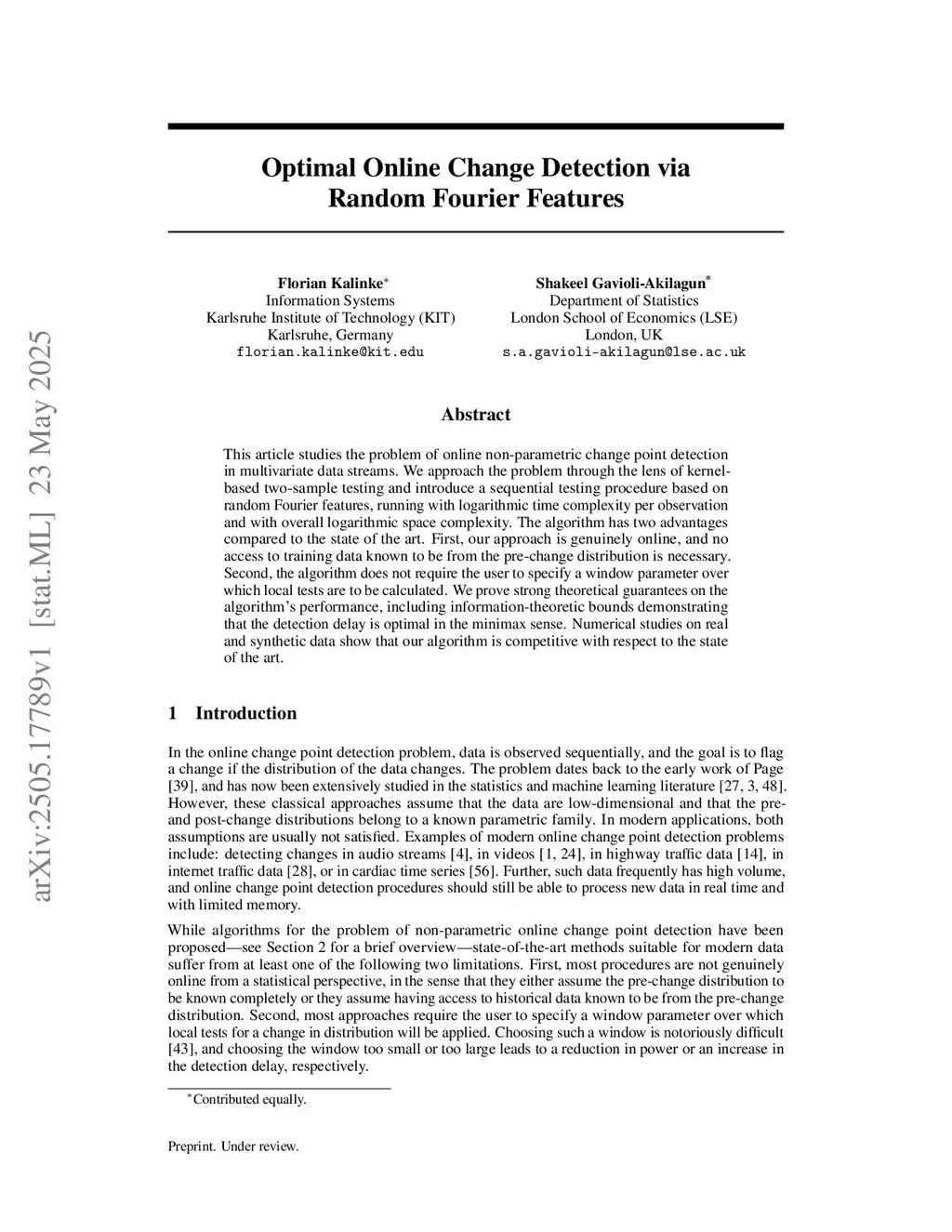 This article studies the problem of online non-parametric change point detection in multivariate data streams. We approach the problem through the lens of kernel-based two-sample testing and introduce a sequential testing procedure based on random Fourier features, running with logarithmic time complexity per observation and with overall logarithmic space complexity. The algorithm has two advantages compared to the state of the art. First, our approach is genuinely online, and no access to training data known to be from the pre-change distribution is necessary. Second, the algorithm does not require the user to specify a window parameter over which local tests are to be calculated. We prove strong theoretical guarantees on the algorithm's performance, including information-theoretic bounds demonstrating that the detection delay is optimal in the minimax sense. Numerical studies on real and synthetic data show that our algorithm is competitive with respect to the state of the art.