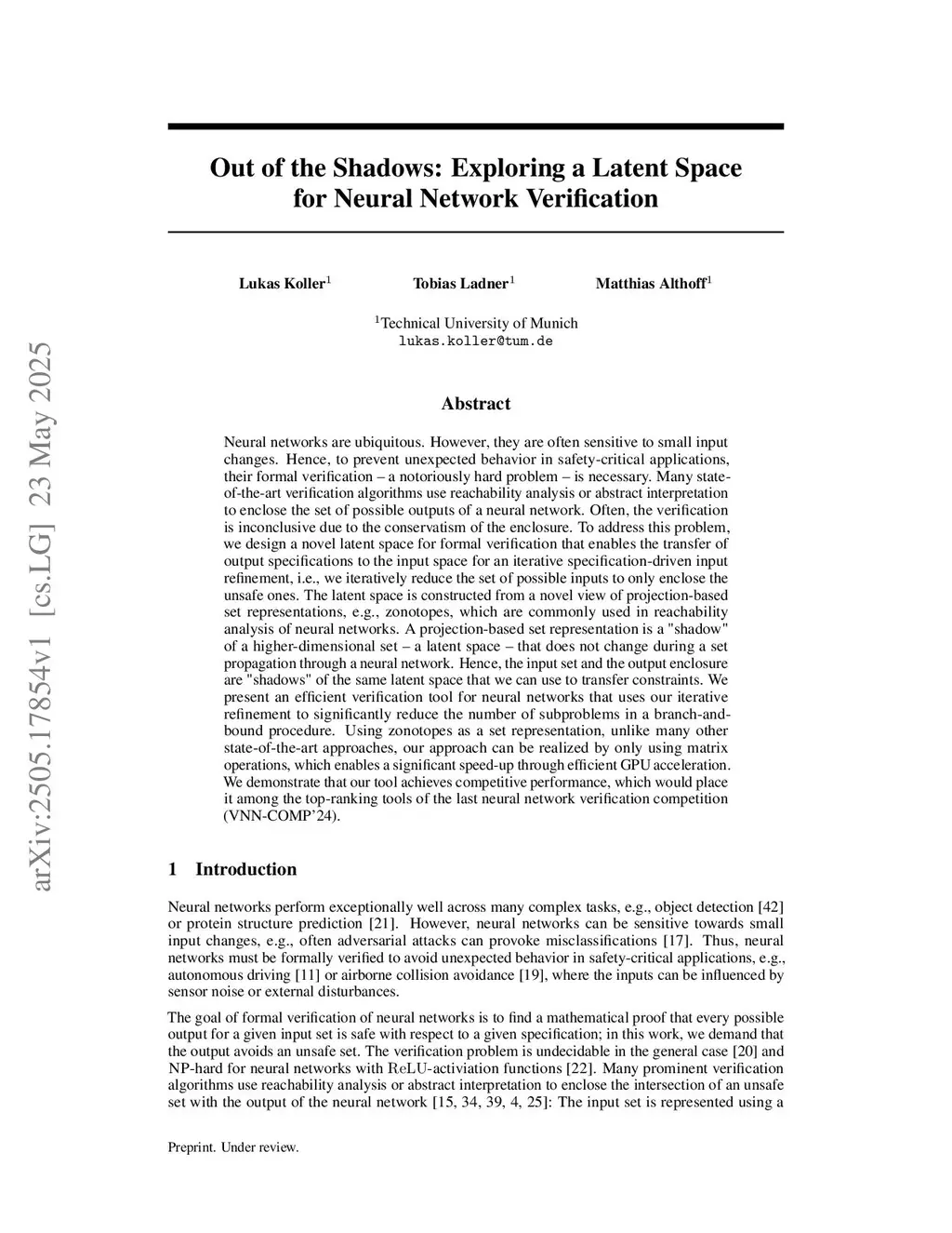 Out of the Shadows: Exploring a Latent Space for Neural Network Verification