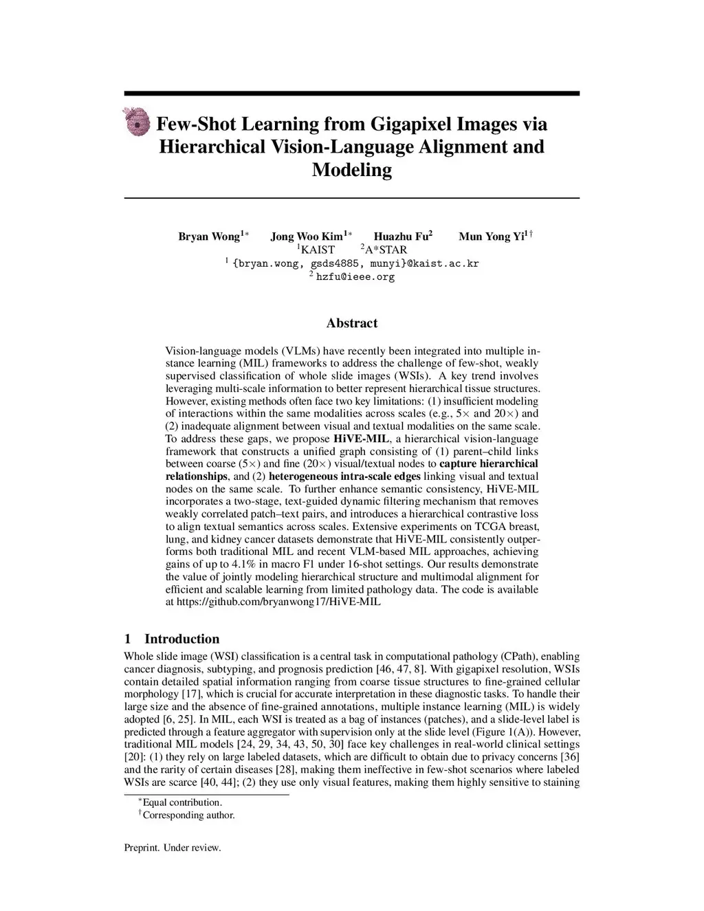 Few-Shot Learning from Gigapixel Images via Hierarchical Vision-Language Alignment and Modeling