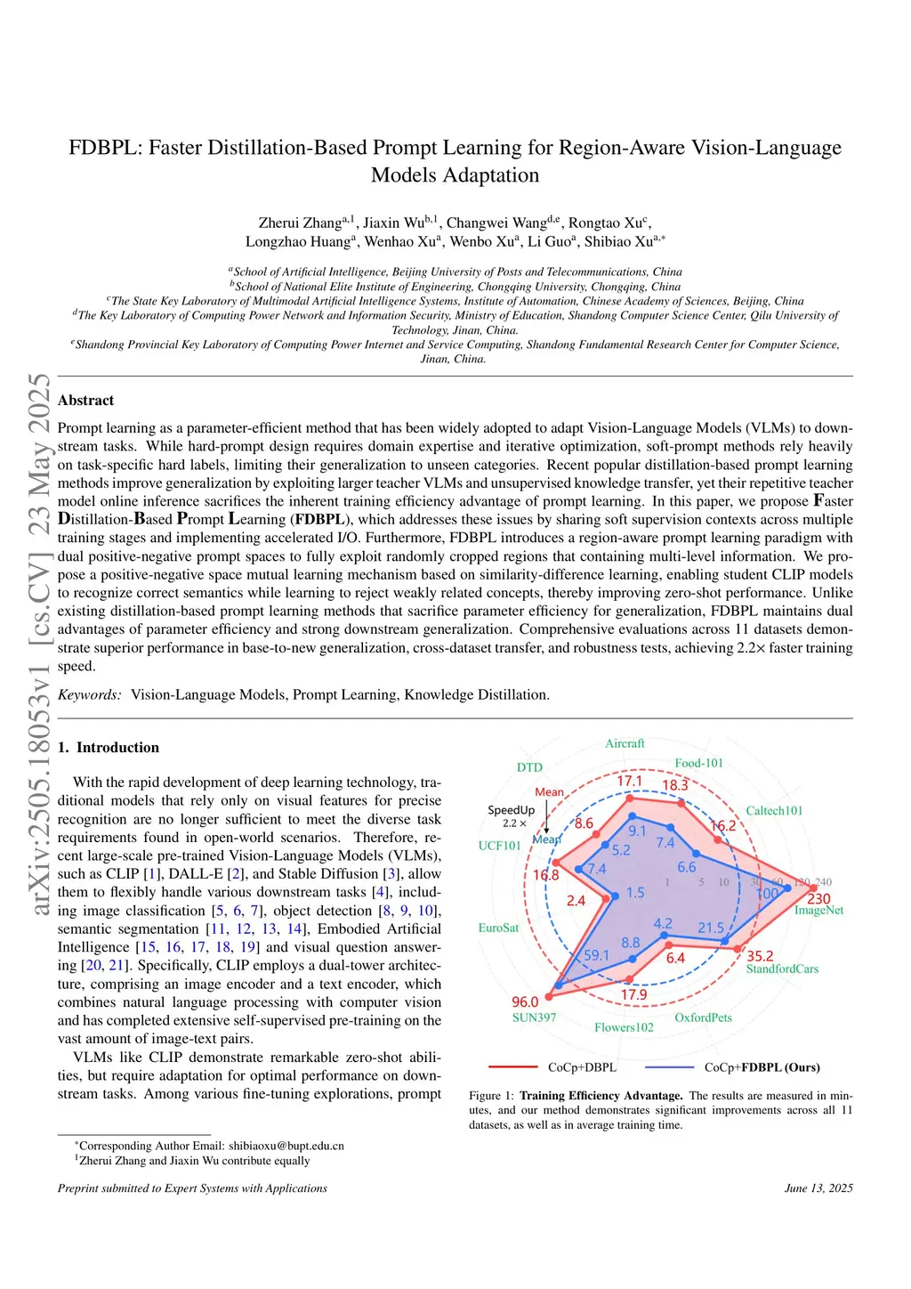 FDBPL: Faster Distillation-Based Prompt Learning for Region-Aware Vision-Language Models Adaptation