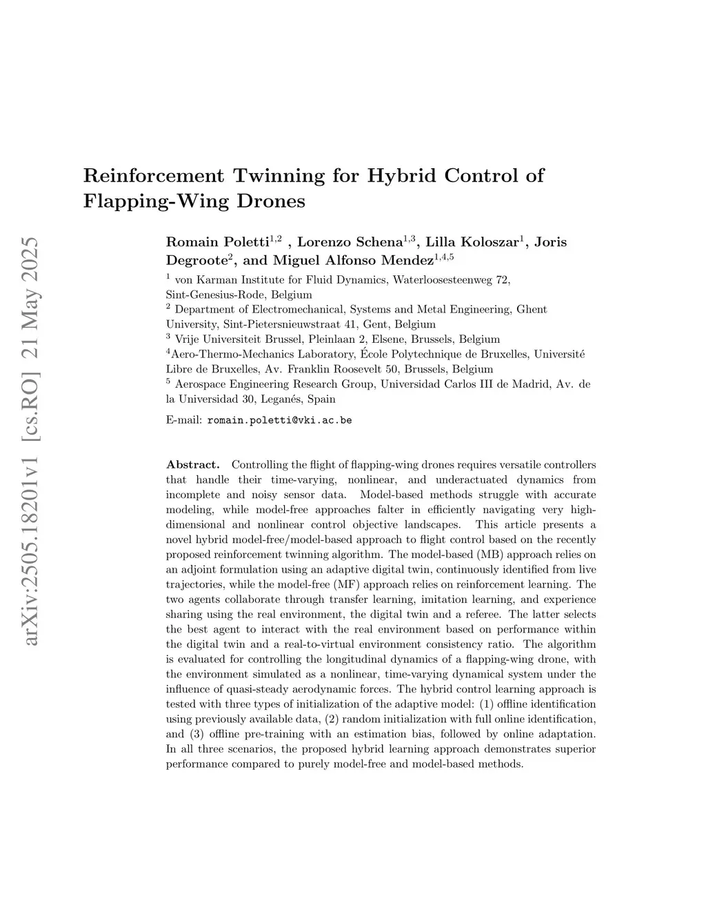 Reinforcement Twinning for Hybrid Control of Flapping-Wing Drones