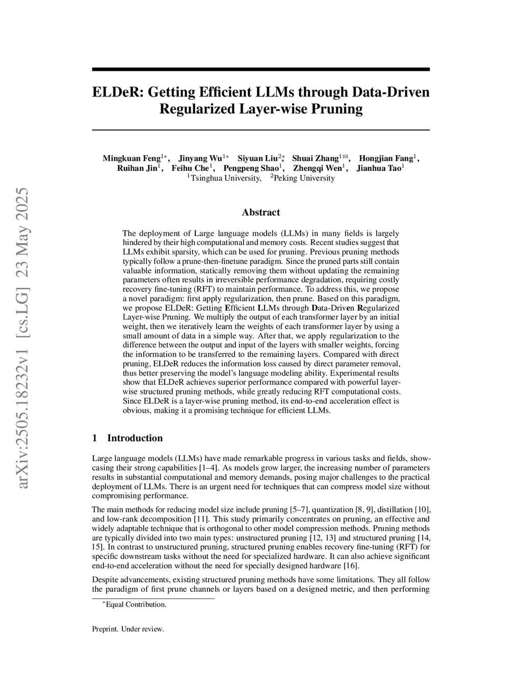 ELDeR: Getting Efficient LLMs through Data-Driven Regularized Layer-wise Pruning