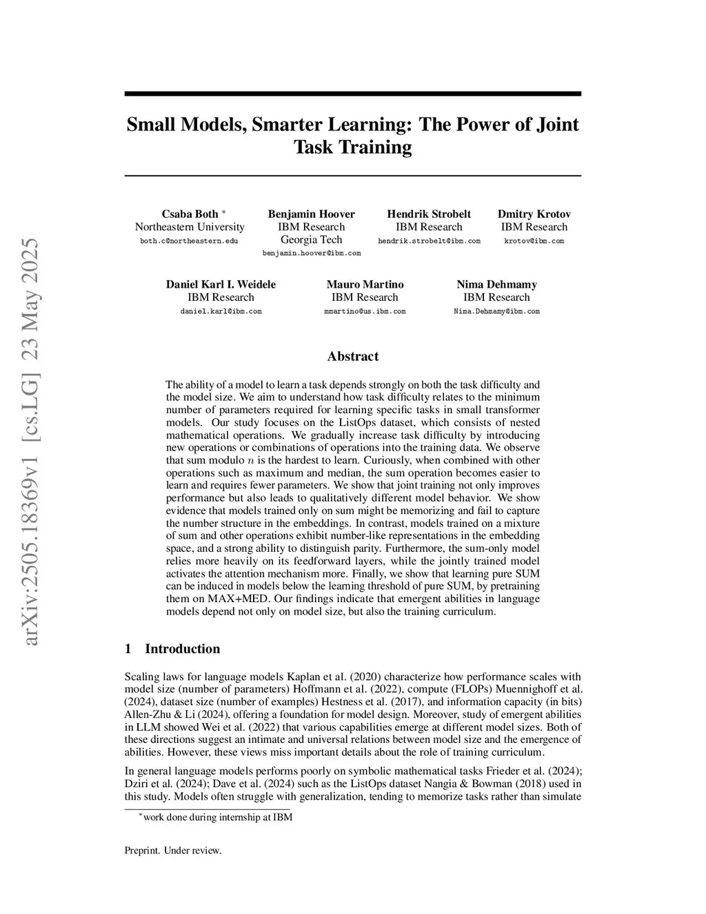 Small Models, Smarter Learning: The Power of Joint Task Training