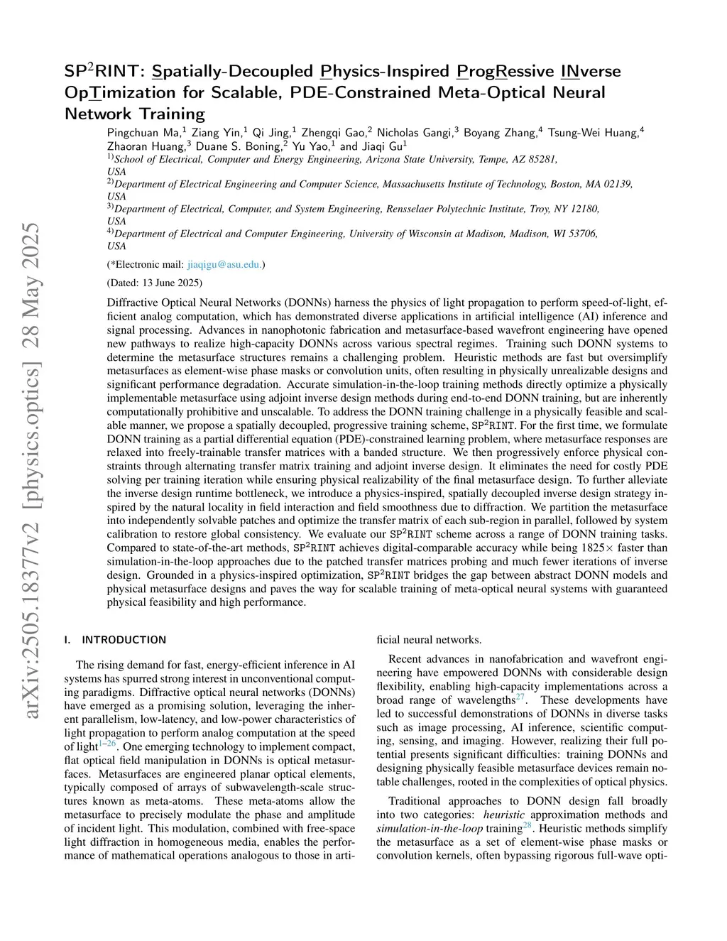 SP2RINT: Spatially-Decoupled Physics-Inspired Progressive Inverse Optimization for Scalable, PDE-Constrained Meta-Optical Neural Network Training