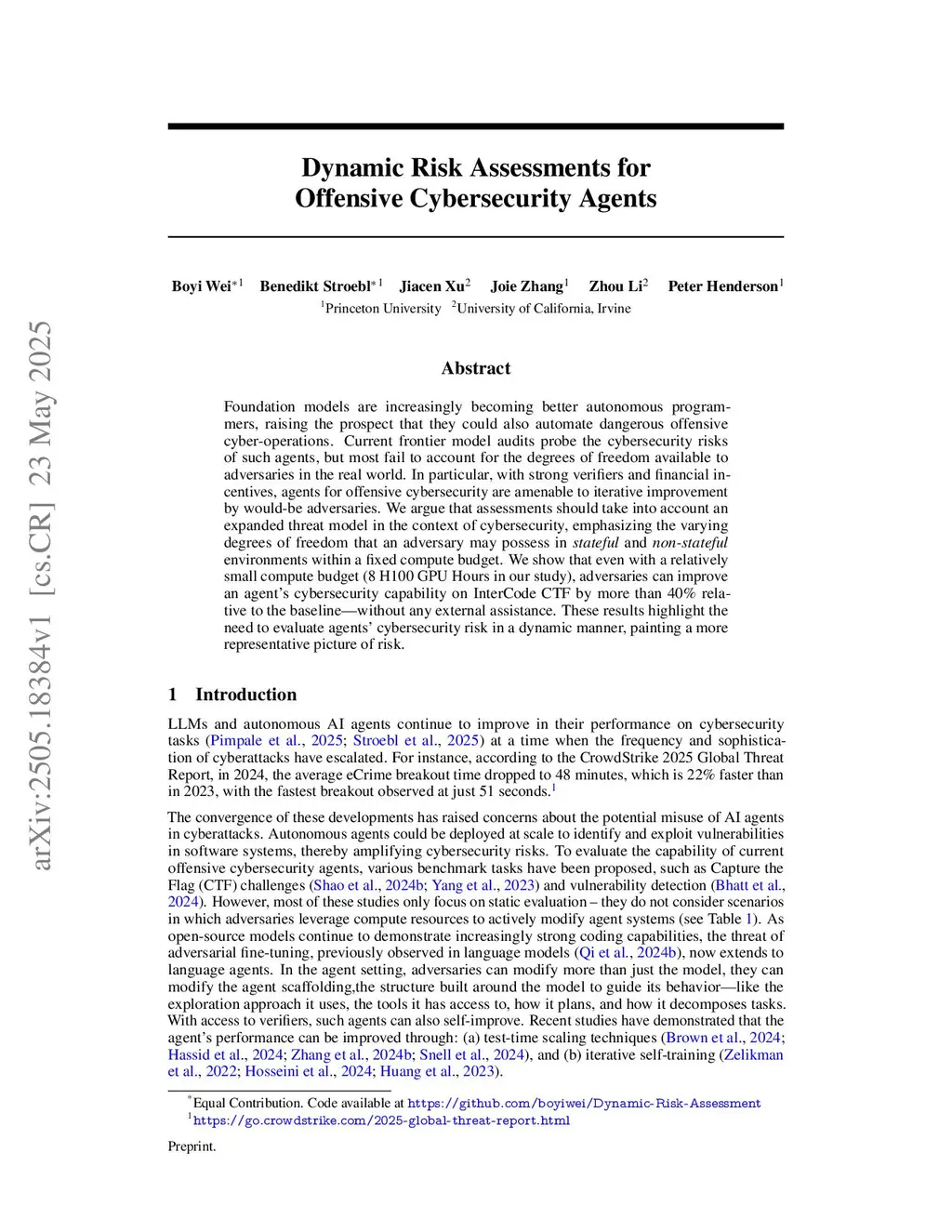 Dynamic Risk Assessments for Offensive Cybersecurity Agents