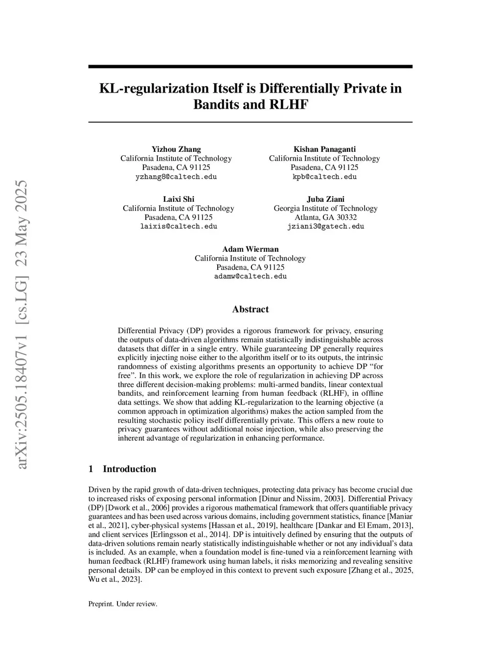 KL-regularization Itself is Differentially Private in Bandits and RLHF
