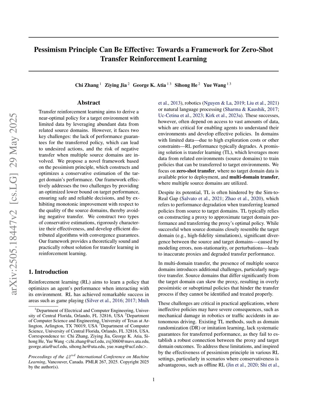 Pessimism Principle Can Be Effective: Towards a Framework for Zero-Shot Transfer Reinforcement Learning