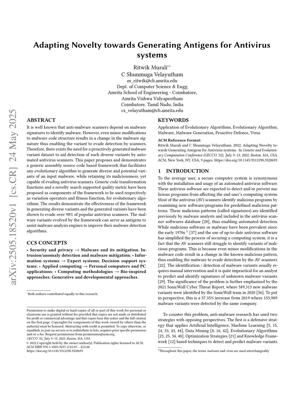 Adapting Novelty towards Generating Antigens for Antivirus systems