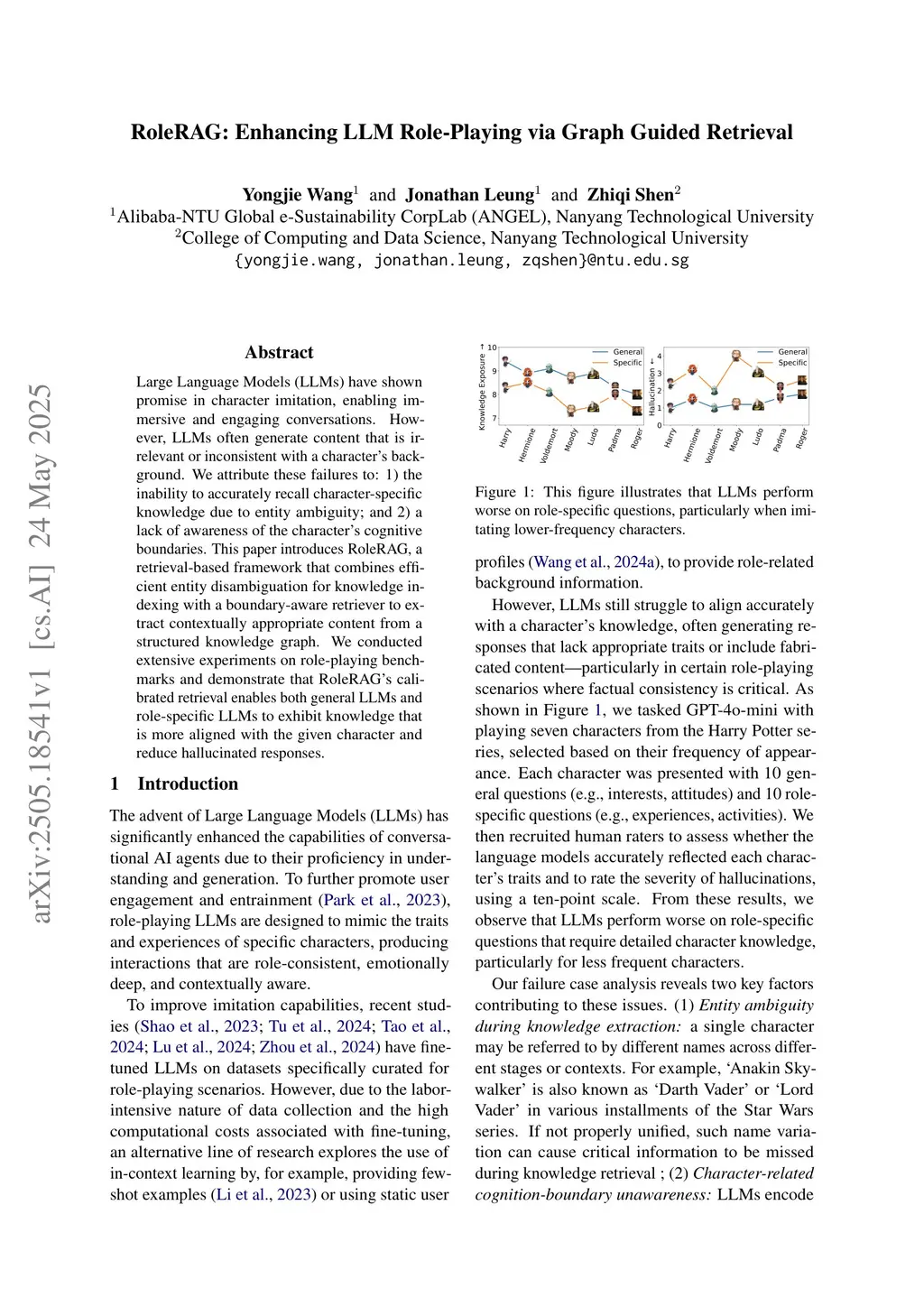 Large Language Models (LLMs) have shown promise in character imitation, enabling immersive and engaging conversations. However, they often generate content that is irrelevant or inconsistent with a character's background. We attribute these failures to: (1) the inability to accurately recall character-specific knowledge due to entity ambiguity, and (2) a lack of awareness of the character's cognitive boundaries. To address these issues, we propose RoleRAG, a retrieval-based framework that integrates efficient entity disambiguation for knowledge indexing with a boundary-aware retriever for extracting contextually appropriate information from a structured knowledge graph. Experiments on role-playing benchmarks show that RoleRAG's calibrated retrieval helps both general-purpose and role-specific LLMs better align with character knowledge and reduce hallucinated responses.