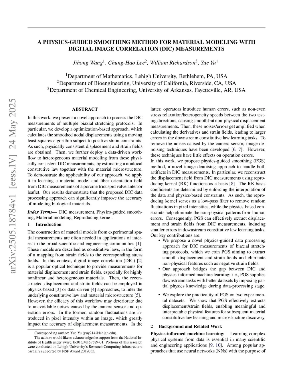 A physics-guided smoothing method for material modeling with digital image correlation (DIC) measurements