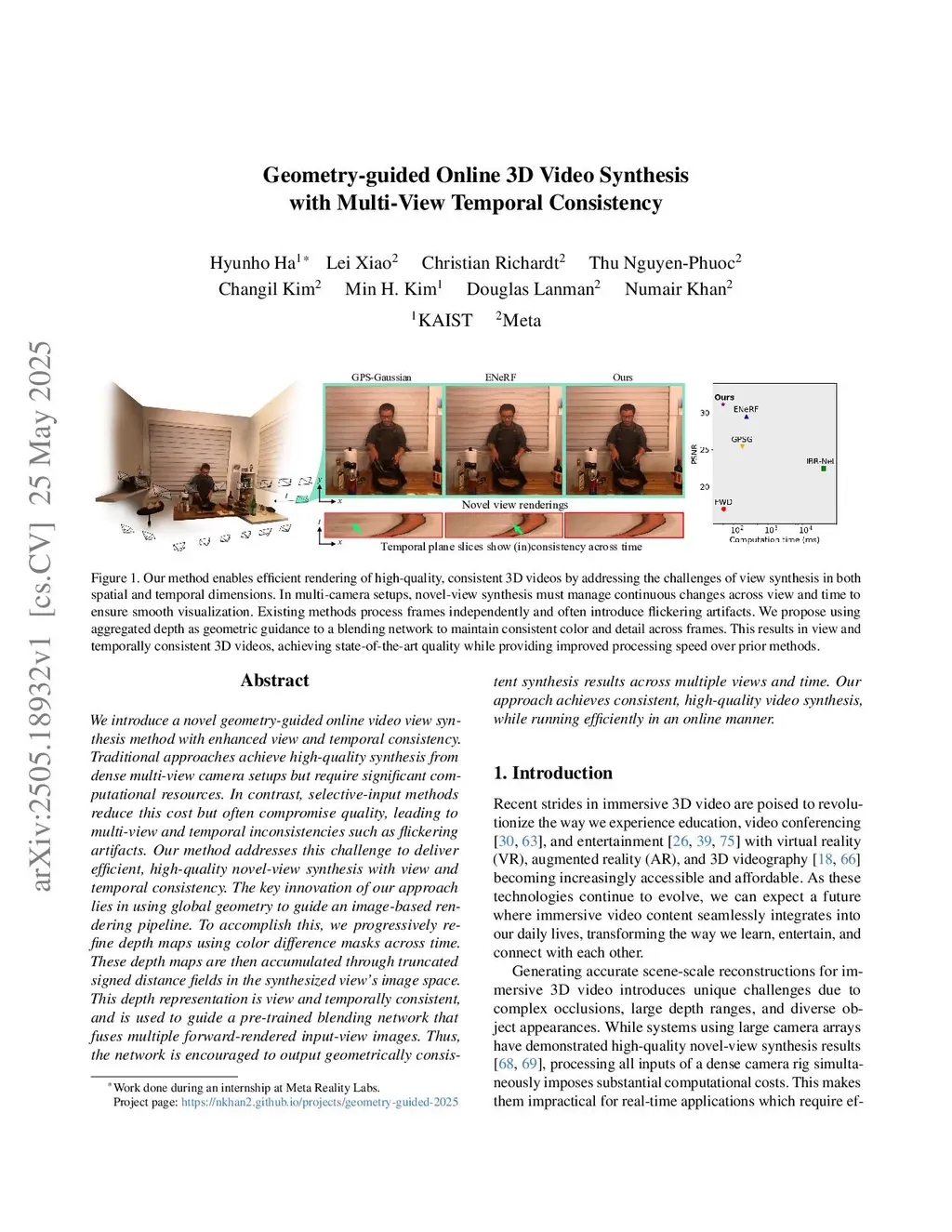Geometry-guided Online 3D Video Synthesis with Multi-View Temporal Consistency