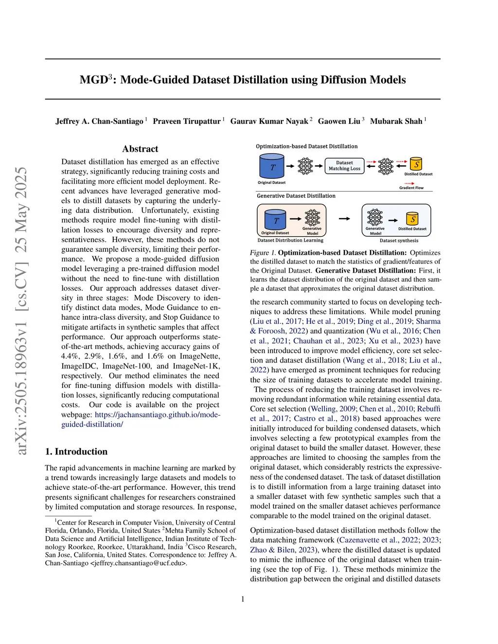 MGD: Mode-Guided Dataset Distillation using Diffusion Models