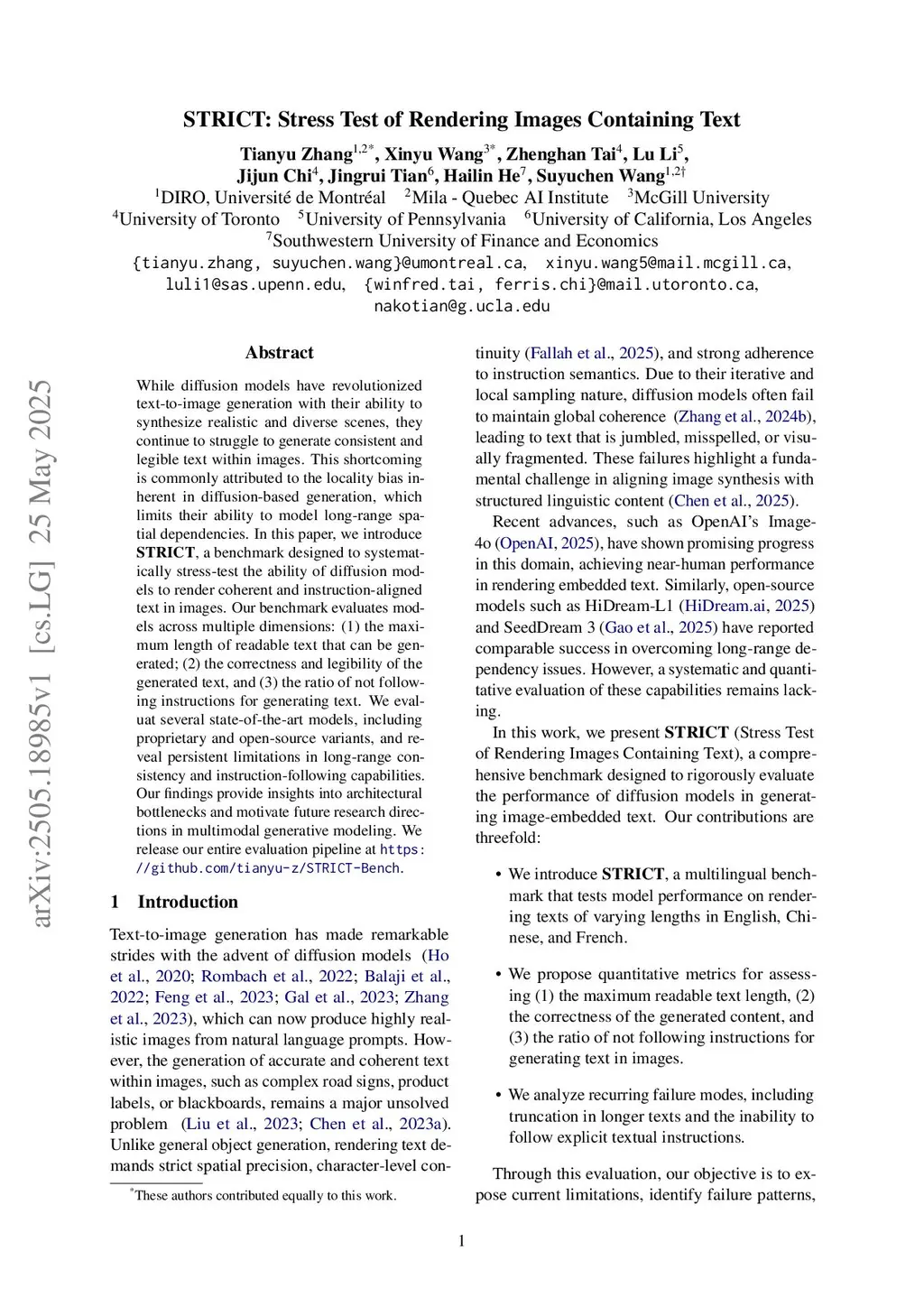 STRICT: Stress Test of Rendering Images Containing Text