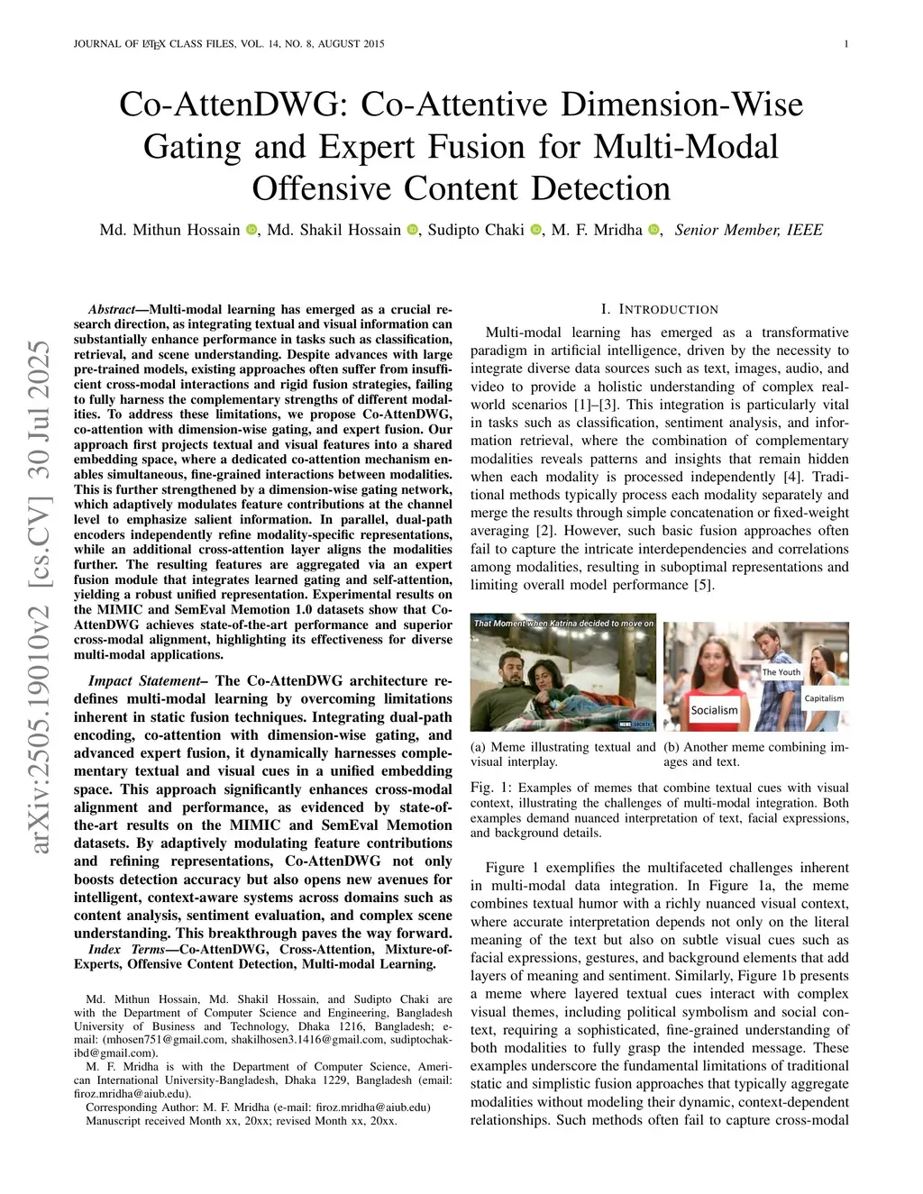 Co-AttenDWG: Co-Attentive Dimension-Wise Gating and Expert Fusion for Multi-Modal Offensive Content Detection