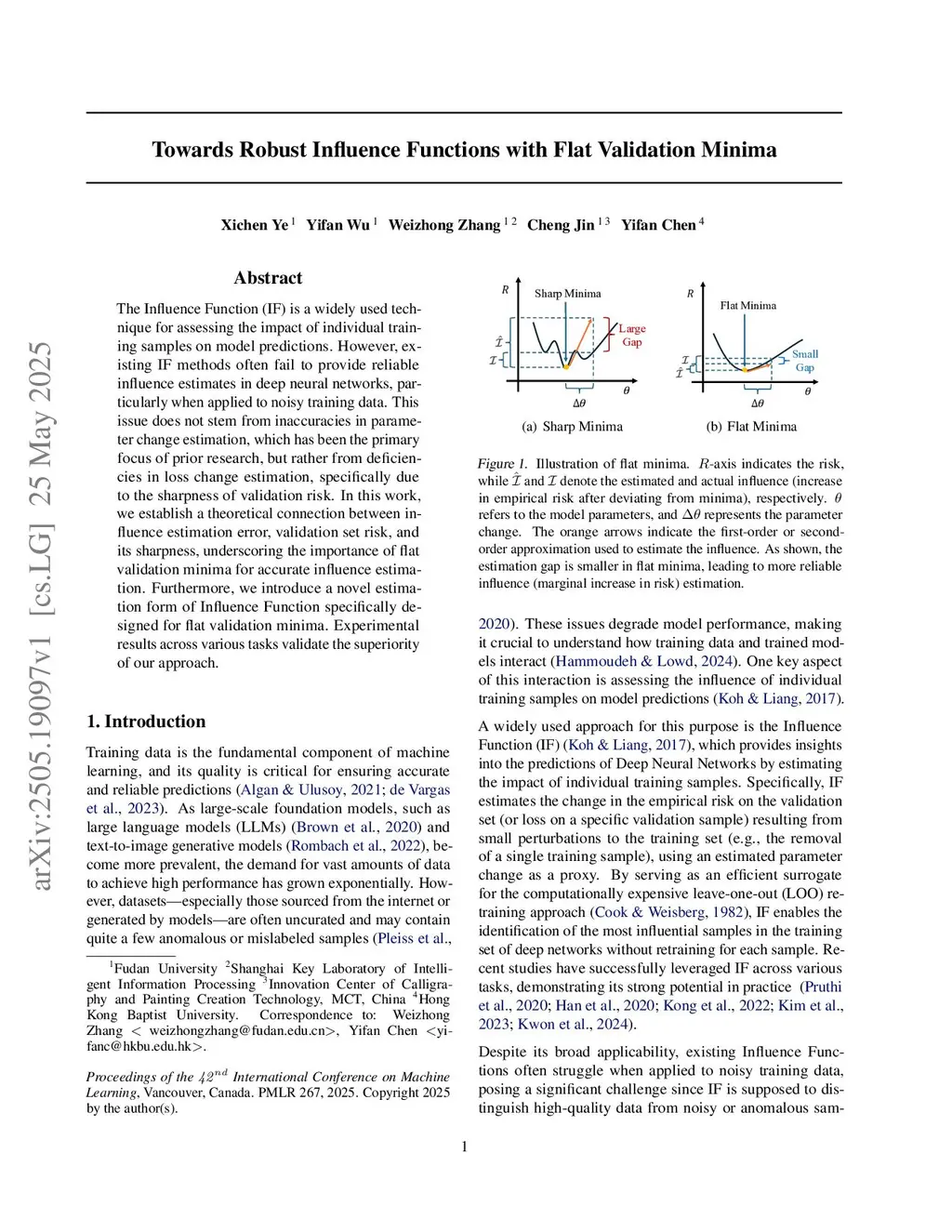 The Influence Function (IF) is a widely used technique for assessing the impact of individual training samples on model predictions. However, existing IF methods often fail to provide reliable influence estimates in deep neural networks, particularly when applied to noisy training data. This issue does not stem from inaccuracies in parameter change estimation, which has been the primary focus of prior research, but rather from deficiencies in loss change estimation, specifically due to the sharpness of validation risk. In this work, we establish a theoretical connection between influence estimation error, validation set risk, and its sharpness, underscoring the importance of flat validation minima for accurate influence estimation. Furthermore, we introduce a novel estimation form of Influence Function specifically designed for flat validation minima. Experimental results across various tasks validate the superiority of our approach.