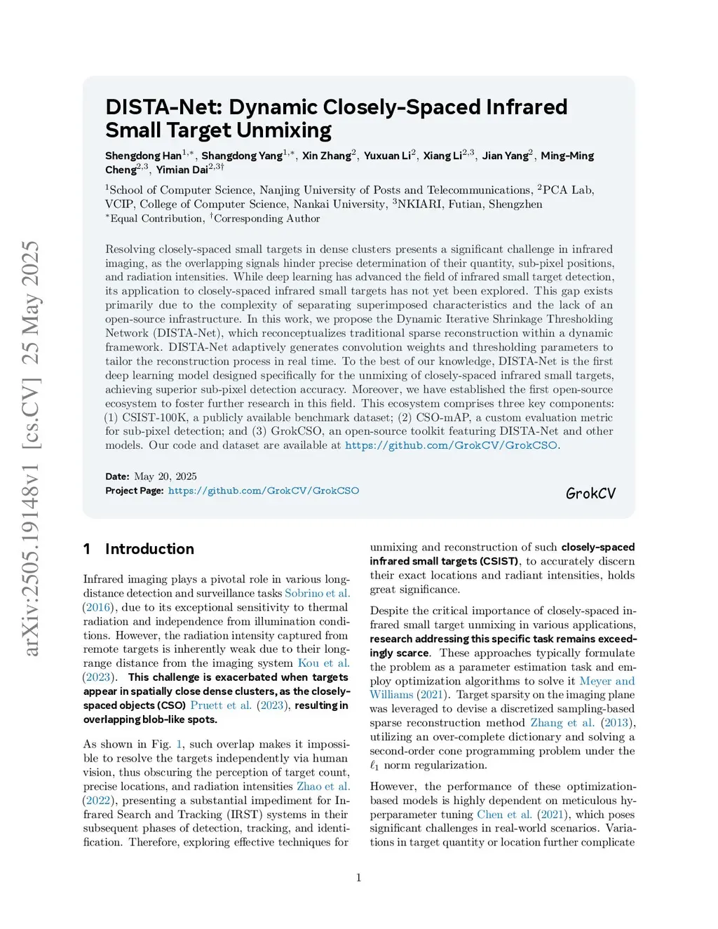 Resolving closely-spaced small targets in dense clusters presents a significant challenge in infrared imaging, as the overlapping signals hinder precise determination of their quantity, sub-pixel positions, and radiation intensities. While deep learning has advanced the field of infrared small target detection, its application to closely-spaced infrared small targets has not yet been explored. This gap exists primarily due to the complexity of separating superimposed characteristics and the lack of an open-source infrastructure. In this work, we propose the Dynamic Iterative Shrinkage Thresholding Network (DISTA-Net), which reconceptualizes traditional sparse reconstruction within a dynamic framework. DISTA-Net adaptively generates convolution weights and thresholding parameters to tailor the reconstruction process in real time. To the best of our knowledge, DISTA-Net is the first deep learning model designed specifically for the unmixing of closely-spaced infrared small targets, achieving superior sub-pixel detection accuracy. Moreover, we have established the first open-source ecosystem to foster further research in this field. This ecosystem comprises three key components: (1) CSIST-100K, a publicly available benchmark dataset; (2) CSO-mAP, a custom evaluation metric for sub-pixel detection; and (3) GrokCSO, an open-source toolkit featuring DISTA-Net and other models. Our code and dataset are available atthis https URL.