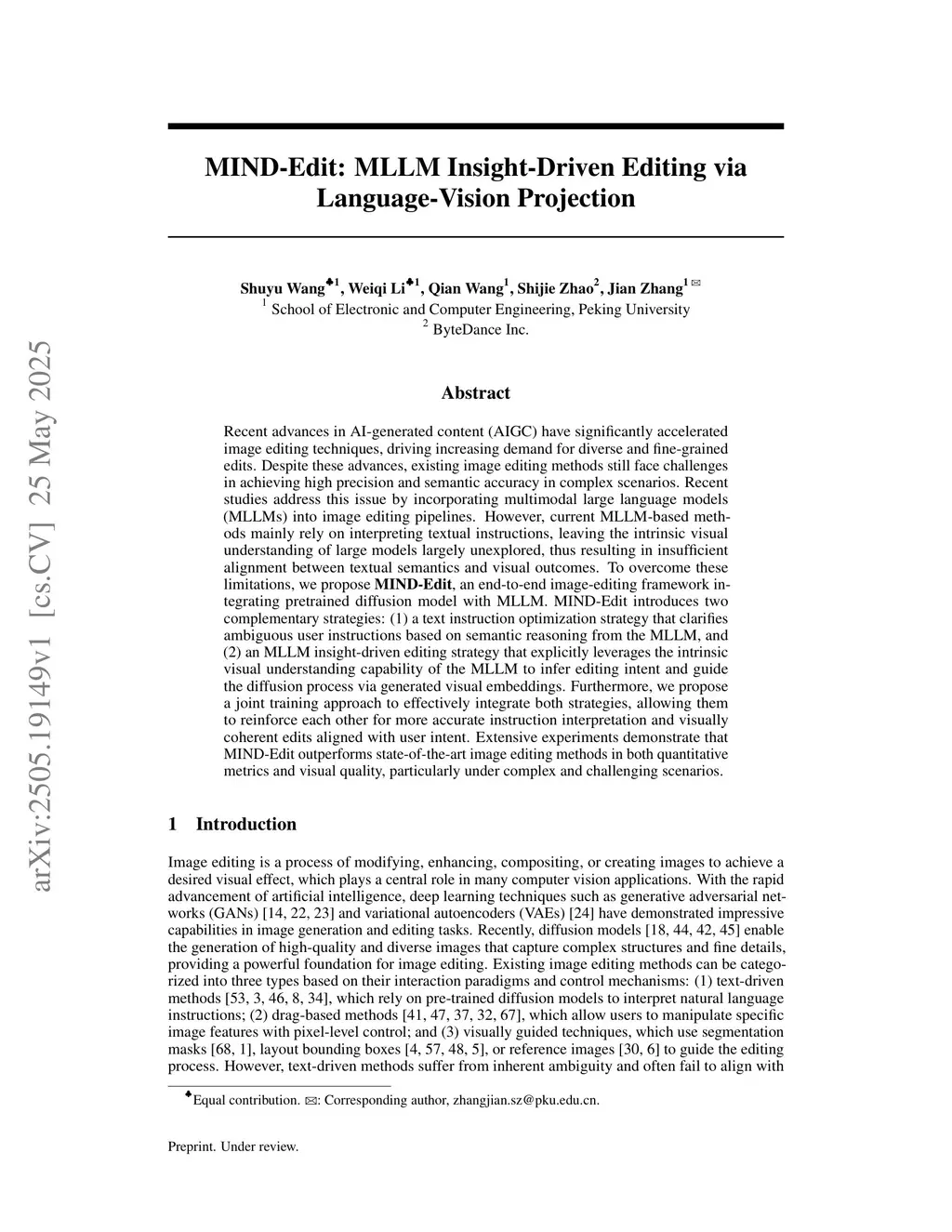 MIND-Edit: MLLM Insight-Driven Editing via Language-Vision Projection