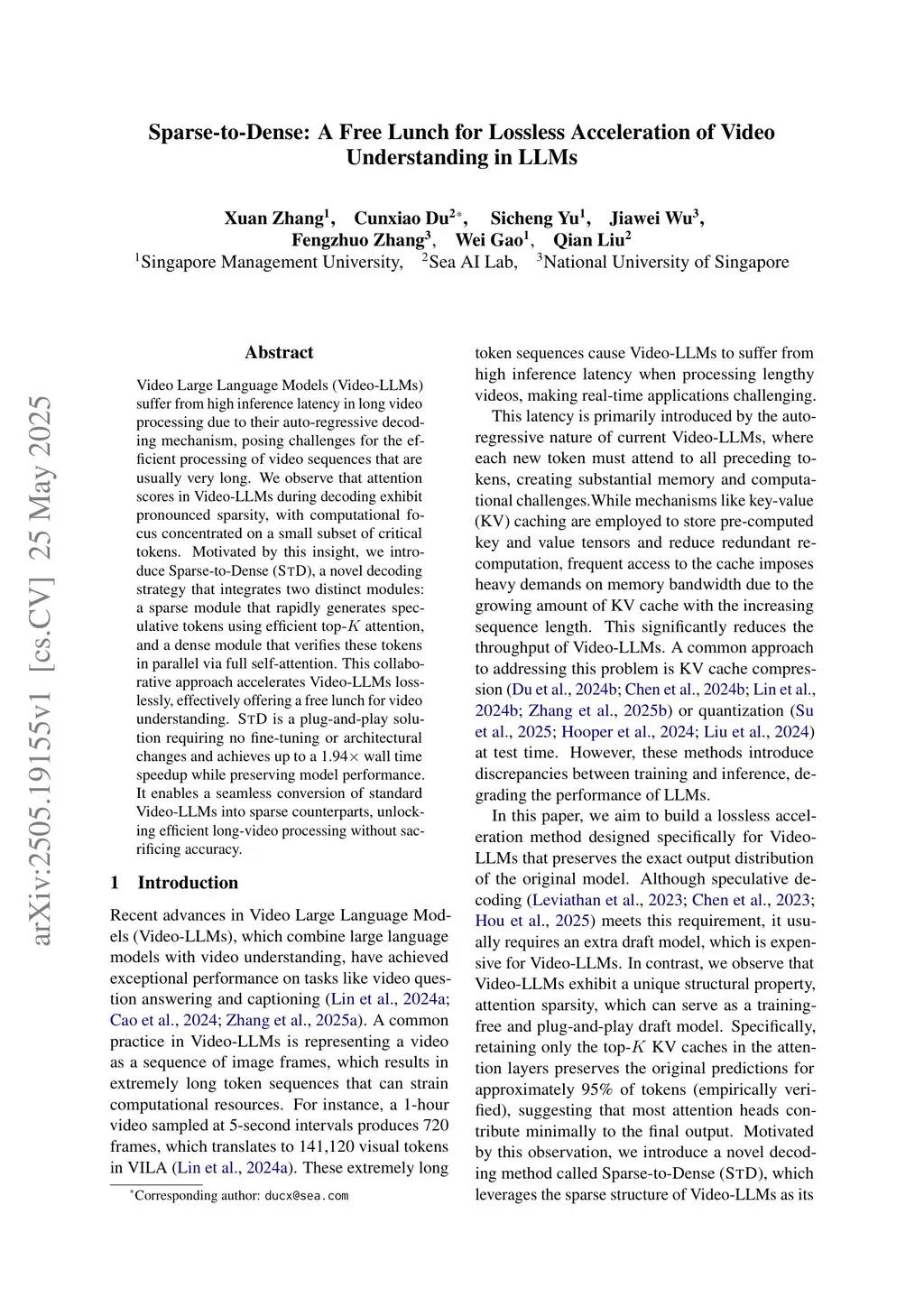 Sparse-to-Dense: A Free Lunch for Lossless Acceleration of Video Understanding in LLMs
