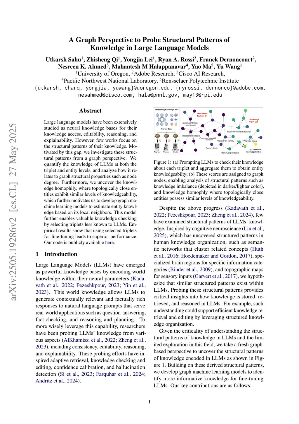 A Graph Perspective to Probe Structural Patterns of Knowledge in Large Language Models
