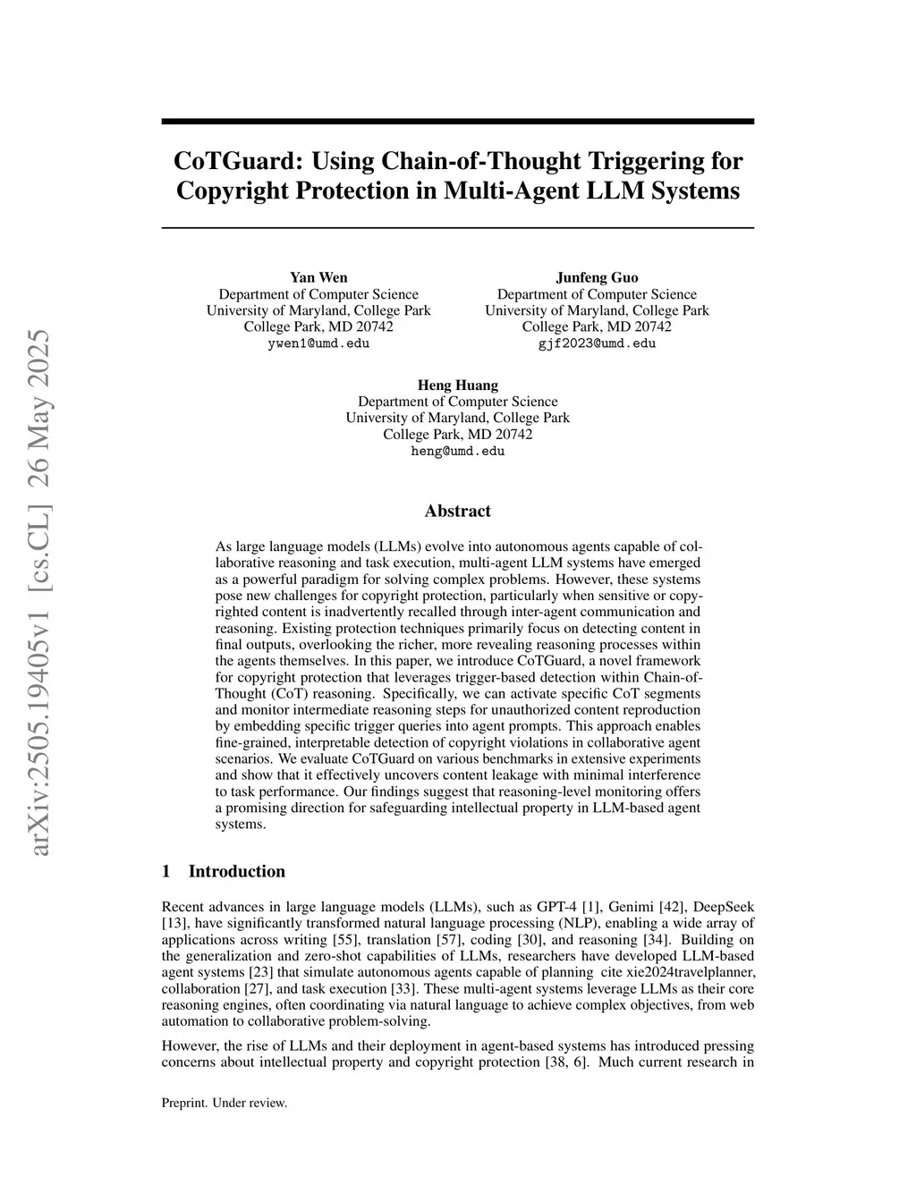 CoTGuard: Using Chain-of-Thought Triggering for Copyright Protection in Multi-Agent LLM Systems