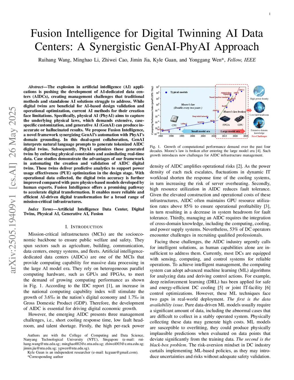 Fusion Intelligence for Digital Twinning AI Data Centers: A Synergistic GenAI-PhyAI Approach