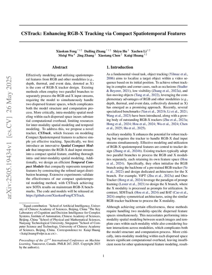 Effectively modeling and utilizing spatiotemporal features from RGB and other modalities (\eg, depth, thermal, and event data, denoted as X) is the core of RGB-X tracker design. Existing methods often employ two parallel branches to separately process the RGB and X input streams, requiring the model to simultaneously handle two dispersed feature spaces, which complicates both the model structure and computation process. More critically, intra-modality spatial modeling within each dispersed space incurs substantial computational overhead, limiting resources for inter-modality spatial modeling and temporal modeling. To address this, we propose a novel tracker, CSTrack, which focuses on modeling Compact Spatiotemporal features to achieve simple yet effective tracking. Specifically, we first introduce an innovative Spatial Compact Module that integrates the RGB-X dual input streams into a compact spatial feature, enabling thorough intra- and inter-modality spatial modeling. Additionally, we design an efficient Temporal Compact Module that compactly represents temporal features by constructing the refined target distribution heatmap. Extensive experiments validate the effectiveness of our compact spatiotemporal modeling method, with CSTrack achieving new SOTA results on mainstream RGB-X benchmarks. The code and models will be released at:this https URL.