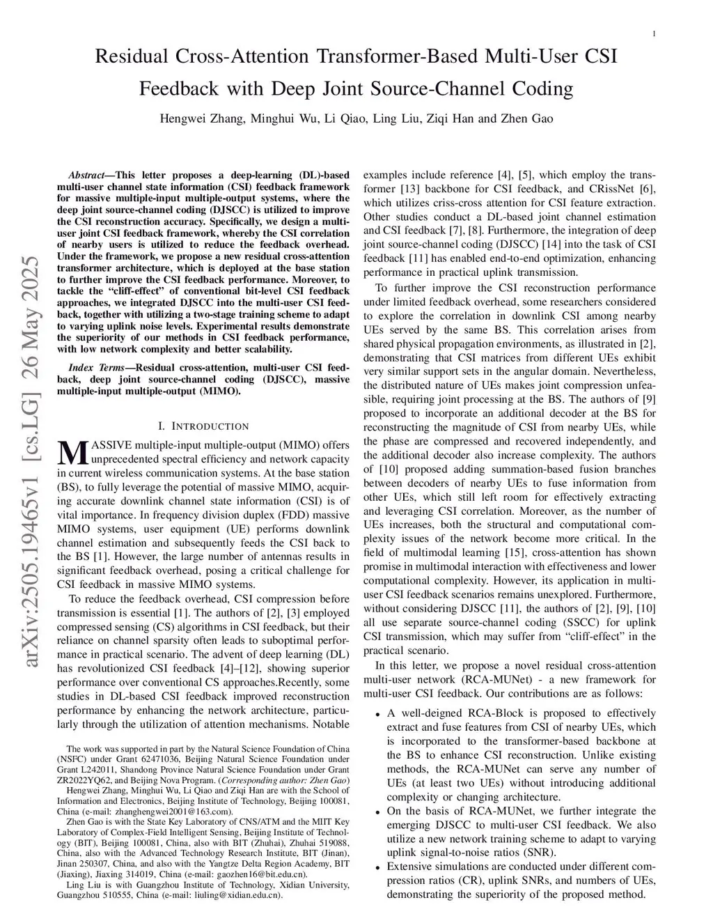 Residual Cross-Attention Transformer-Based Multi-User CSI Feedback with Deep Joint Source-Channel Coding
