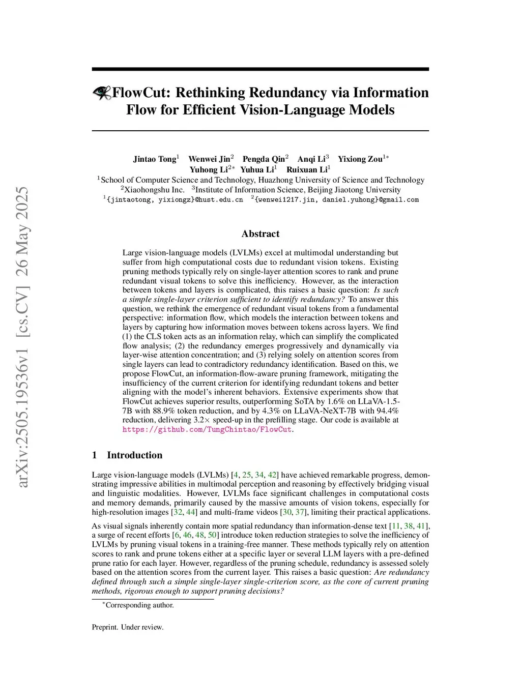 FlowCut: Rethinking Redundancy via Information Flow for Efficient Vision-Language Models