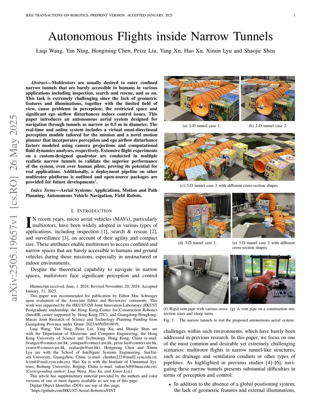 Autonomous Flights inside Narrow Tunnels